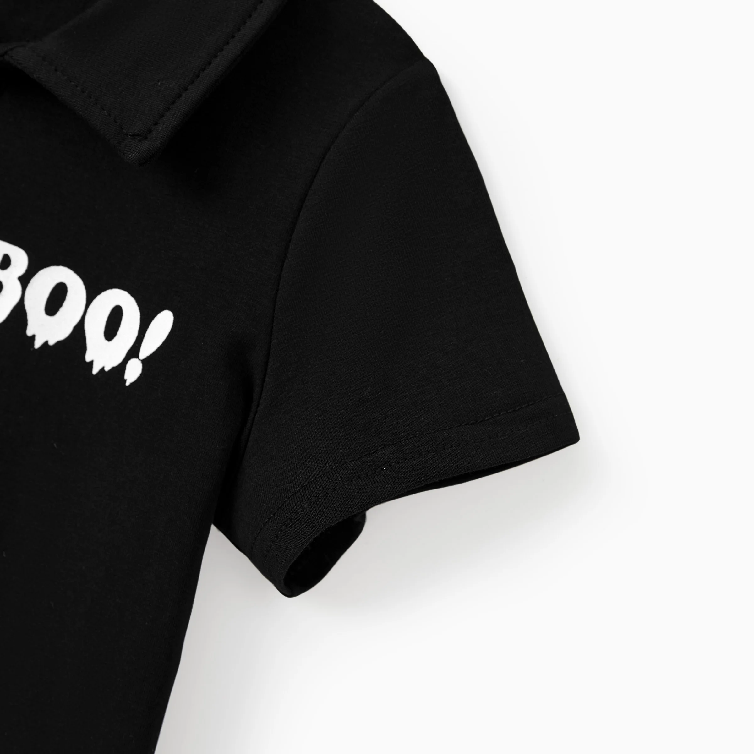 Comprar PatPat-Conjunto de ropa a juego para la familia, camisa Polo con estampado de Boo negro o línea A, vestido de tirantes de tul con capa