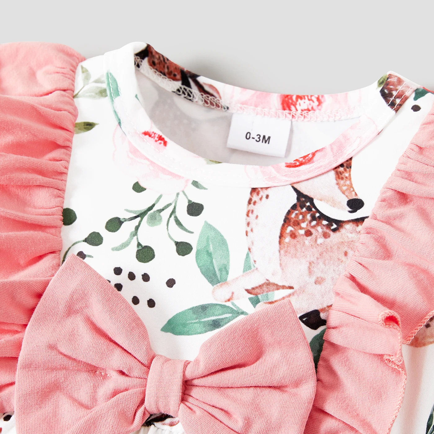 Comprar PatPat-Mono de manga larga con estampado Floral de ciervo para niña, mono con volantes, decoración de lazo