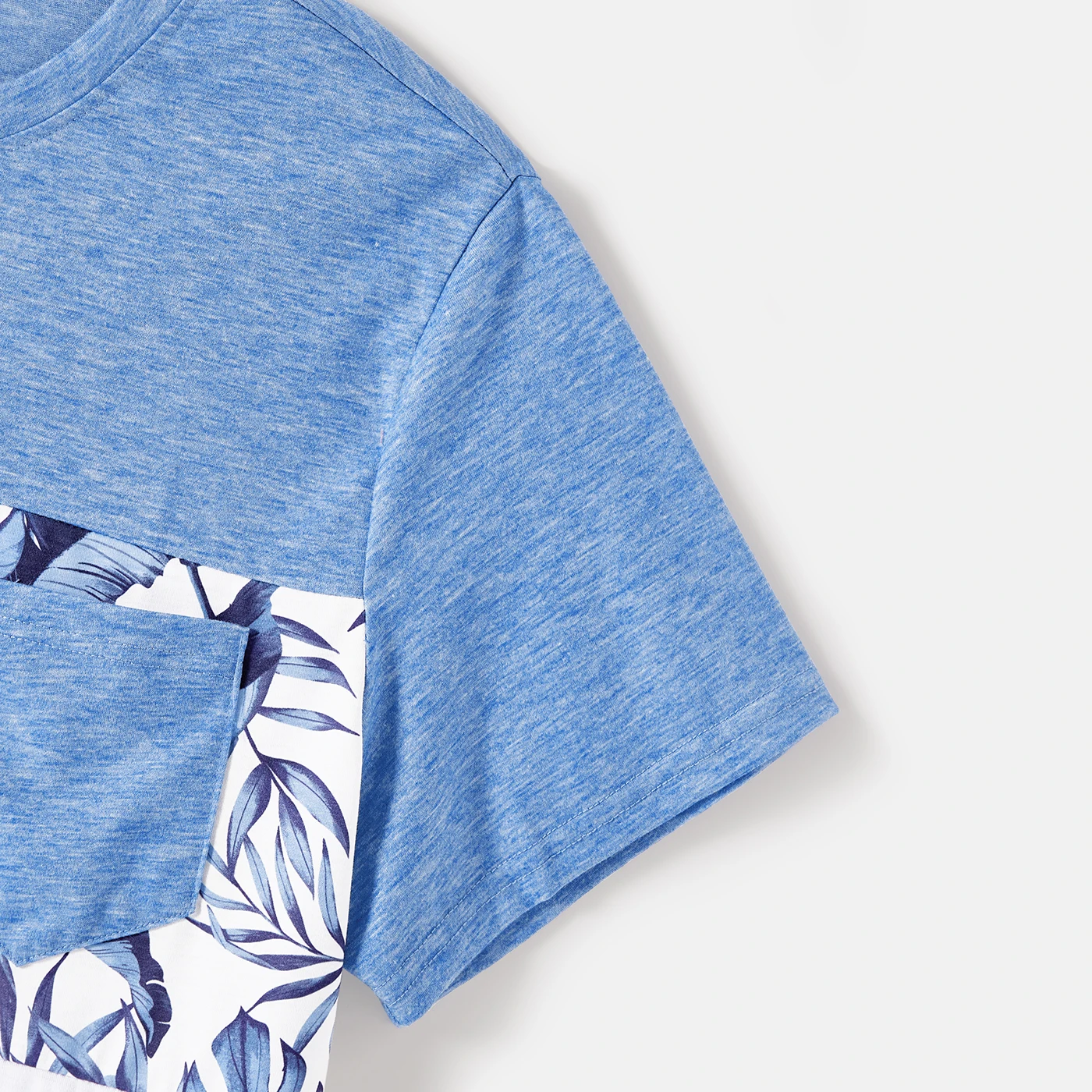 Comprar PatPat-traje a juego para la familia Naia Blue Floral, camiseta con botón, volante, dobladillo, Vestido con tirantes
