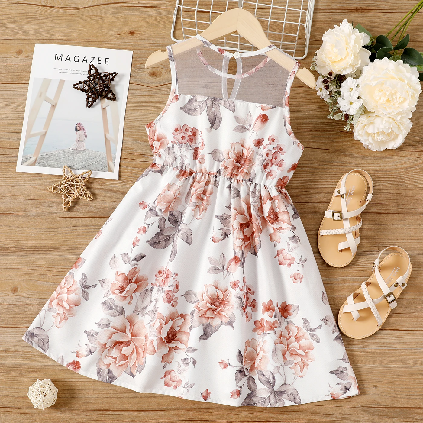 Comprar PatPat Vestido sin mangas con diseño de malla y estampado floral para niña