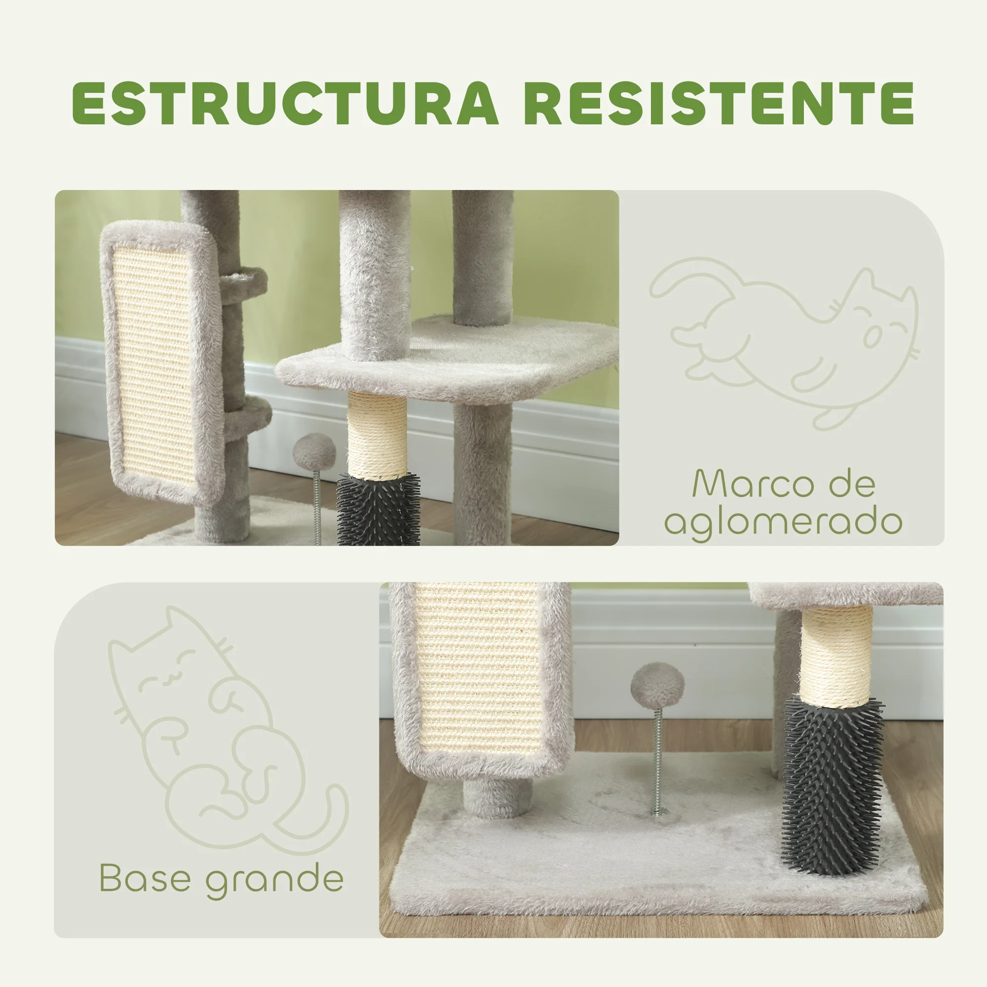 Satisface los instintos de tu gato con seguridad con este rascador de PawHut. Equipado con postes y una alfombra para rascar, una cama acogedora, una cueva, bolas de juguete y un cepillo para pelos, este torre para gatos es un auténtico paraíso para tu amigo peludo. Fabricado en aglomerado de madera y sisal, protege tus muebles de los arañazos y ofrece un refugio ideal para la diversión y el descanso de tu mascota.