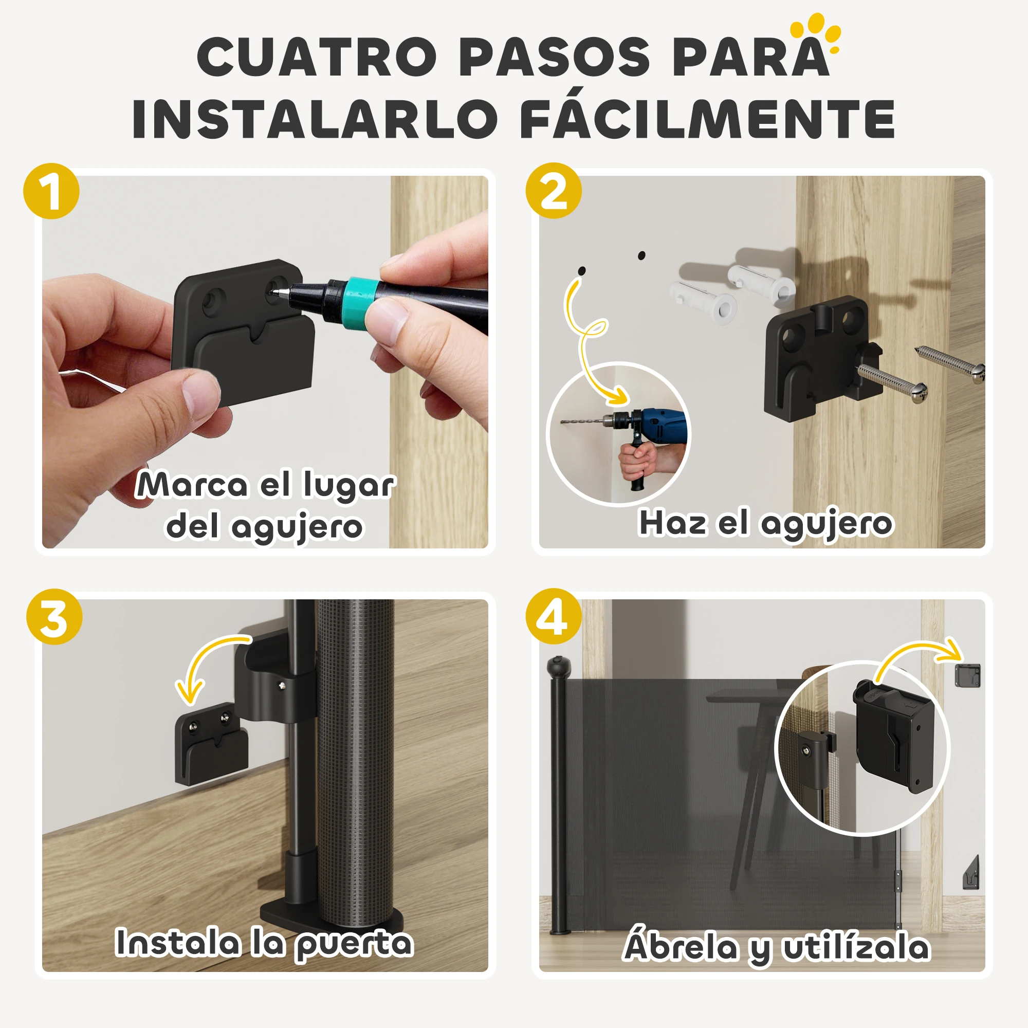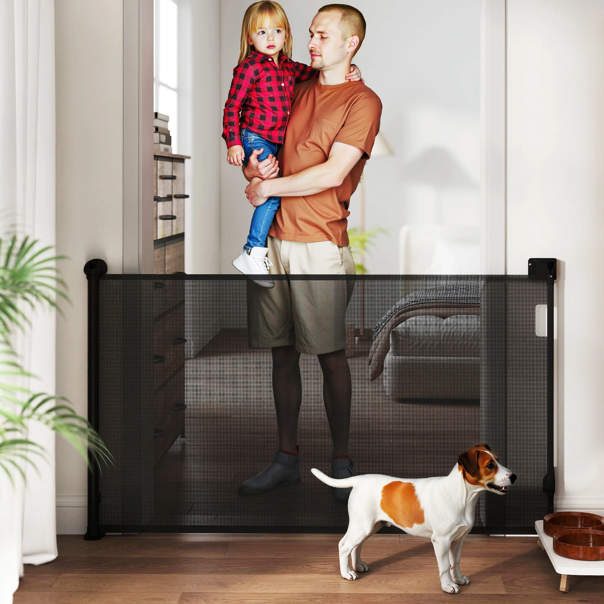 Comprar PawHut Barrera de Seguridad para Perros Retráctil 0-136 cm Puerta para Perros Pequeños Extensible con Interruptor de Cierre Red de Seguridad para Pasillos Escaleras Interiores y Exteriores