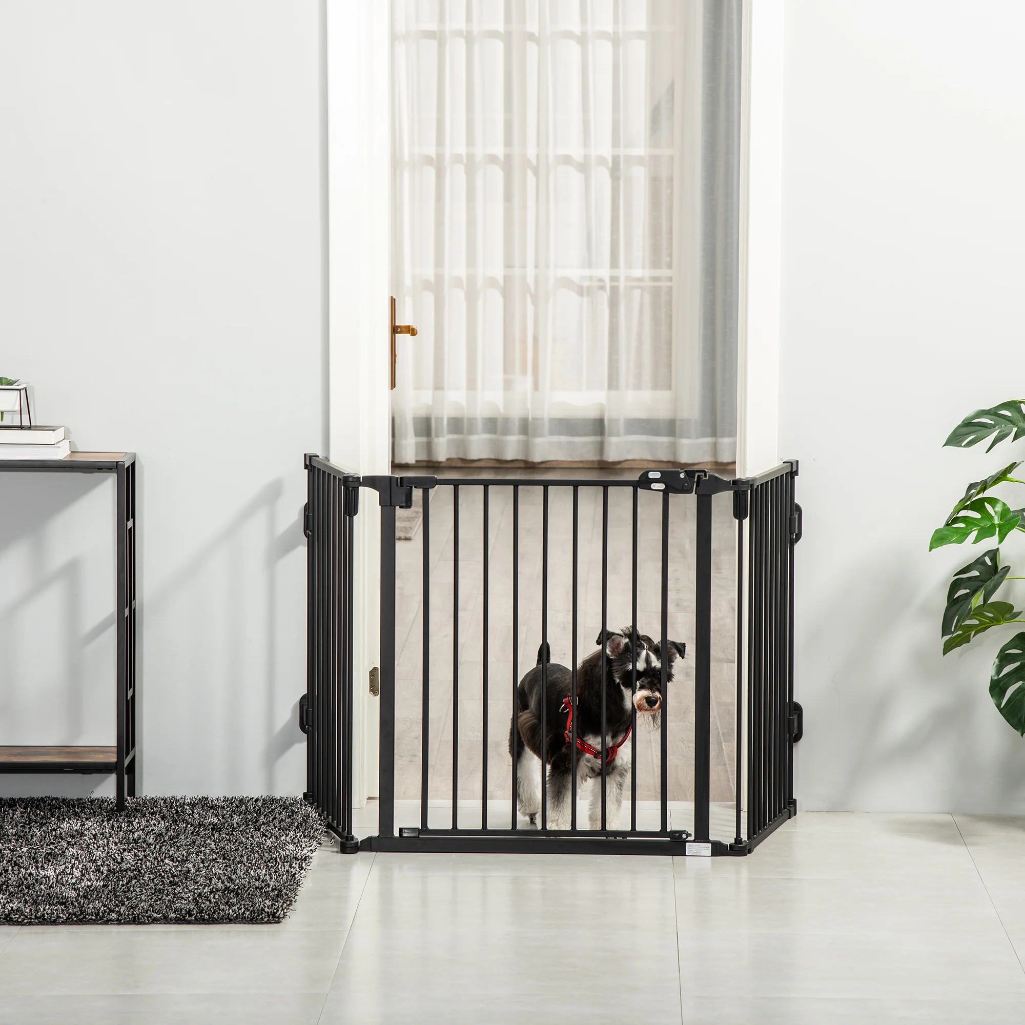 PawHut Barrera de Seguridad para Perros Valla para Perros Plegable Rejilla de Protección de Chimenea 202,5 cm con Puerta Auto Cierre para Escalera Pasillo Negro