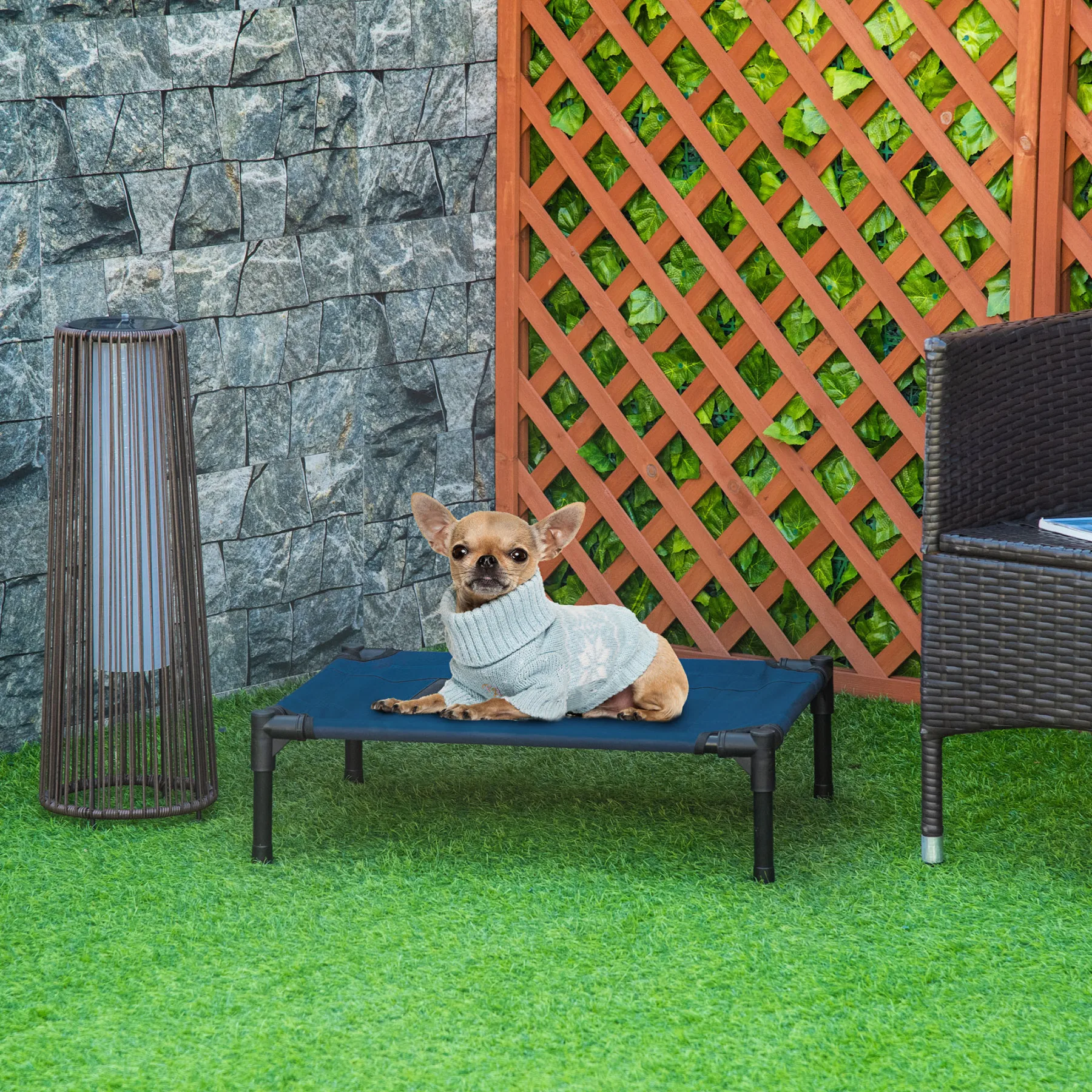 Comprar PawHut Cama Elevada para Perros Gatos Portátil Cama para Mascotas con Zona de Malla Transpirable y Tela Oxford Marco de Acero para Interior Exterior 61x46x18 cm Azul