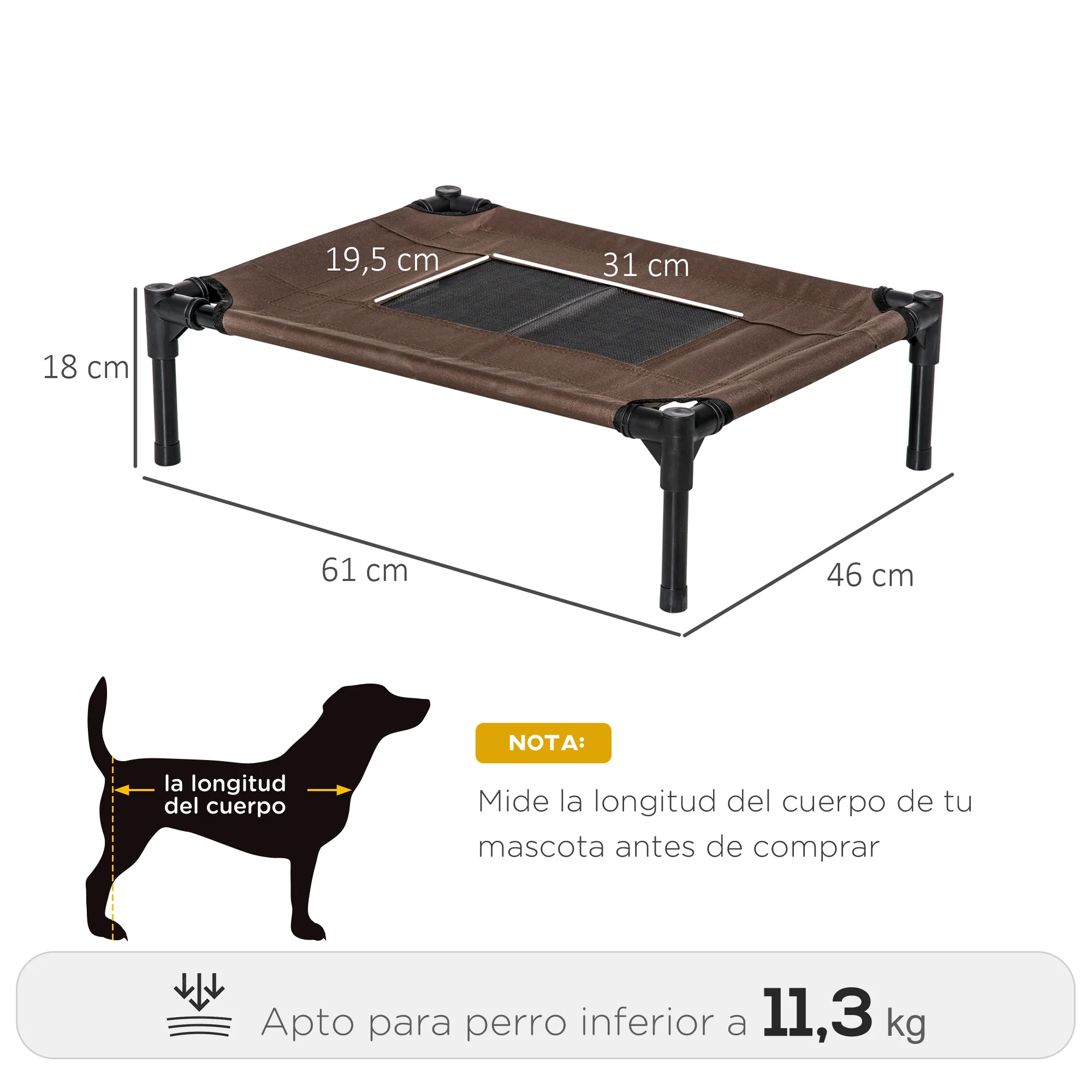 Características: - Cama elevada para mascotas con estructura resistente de acero - Cuerpo de tejido Oxford 600D con 1 zona interior de tela de malla con recubrimiento de PVC para mayor resistencia - Tiene 4 pies que mantienen la base elevada del suelo proporcionando gran firmeza y protegiendo de la humedad - Las patas tienen almohadillas antideslizantes para asegurar mayor estabilidad y evitar rayones en el suelo - Fácil de almacenar y transportar con la bolsa de tela Oxford incluida - Fácil de montar, sin necesidad de herramientas - Cama adecuada para mascotas de peso igual o inferior a 11,3 kg