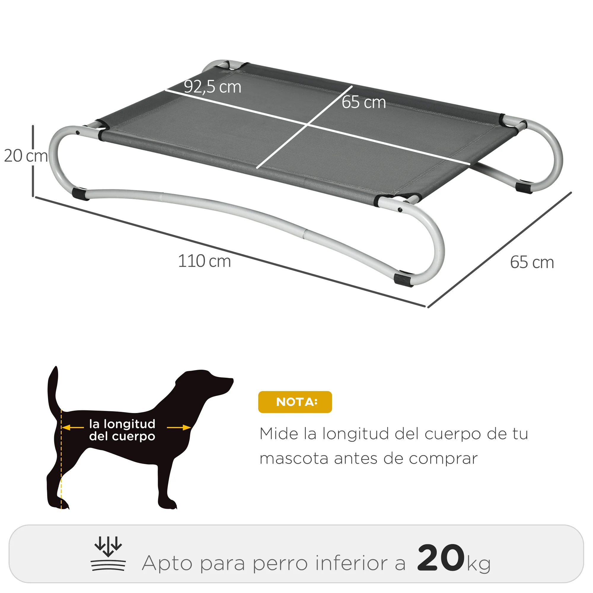 Comprar PawHut Cama Elevada para Perros Pequeños Medianos Cama para Mascotas con Tela de Malla Transpirable Marco Curvo de Acero para Interior Exterior 110x65x20 cm Gris