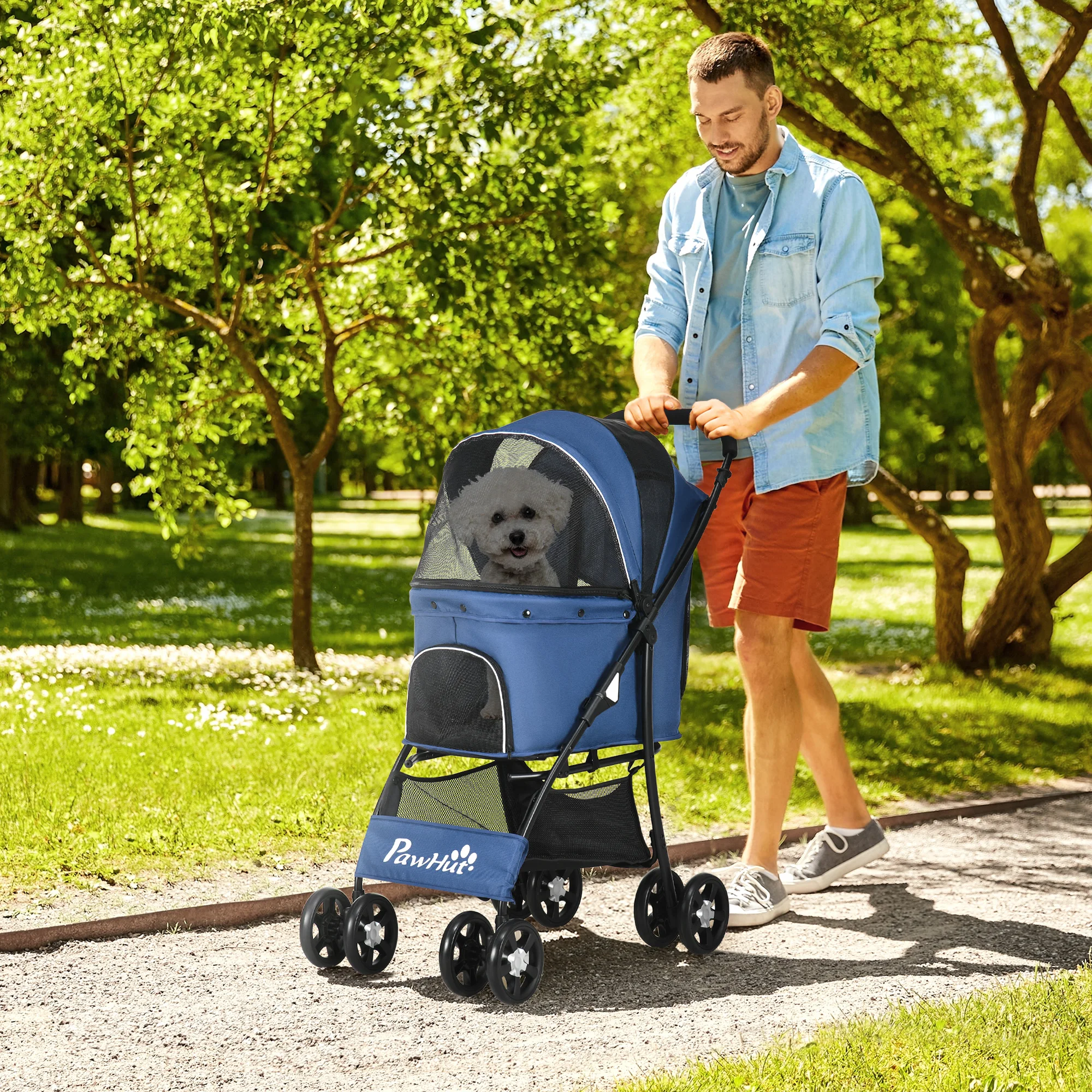Comprar PawHut Carrito para Perros Plegable Cochecito para Mascotas Carrito para Perros Pequeños con Cesta de Almacenaje Capota Ajustable Ventana de Malla y 2 Ruedas Universales 81x48x99 cm Azul Oscuro