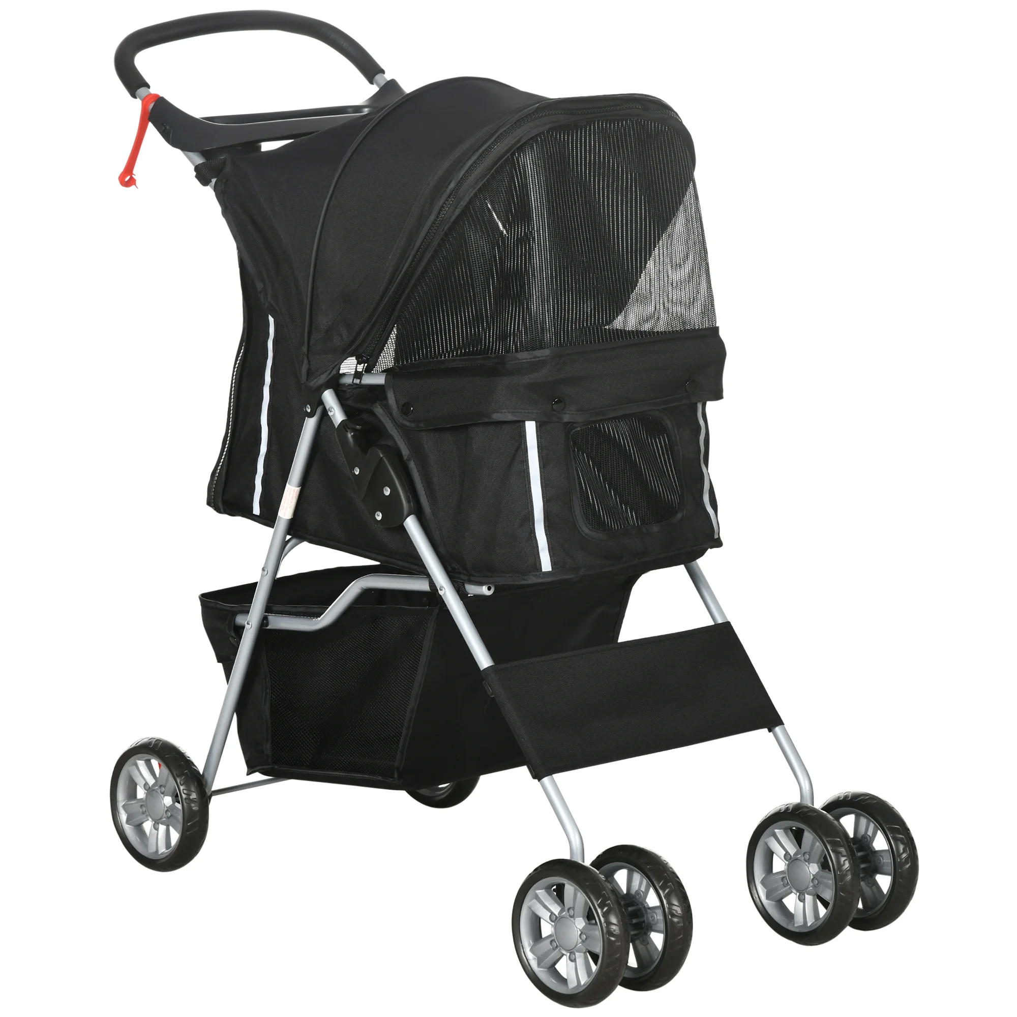 Comprar PawHut Carrito para Perros Plegable Cochecito para Mascotas Carrito para Perros Pequeños con Toldo Ajustable Cesta de Almacenaje Ventanas de Malla Portavasos y Ruedas 75x45x97 cm