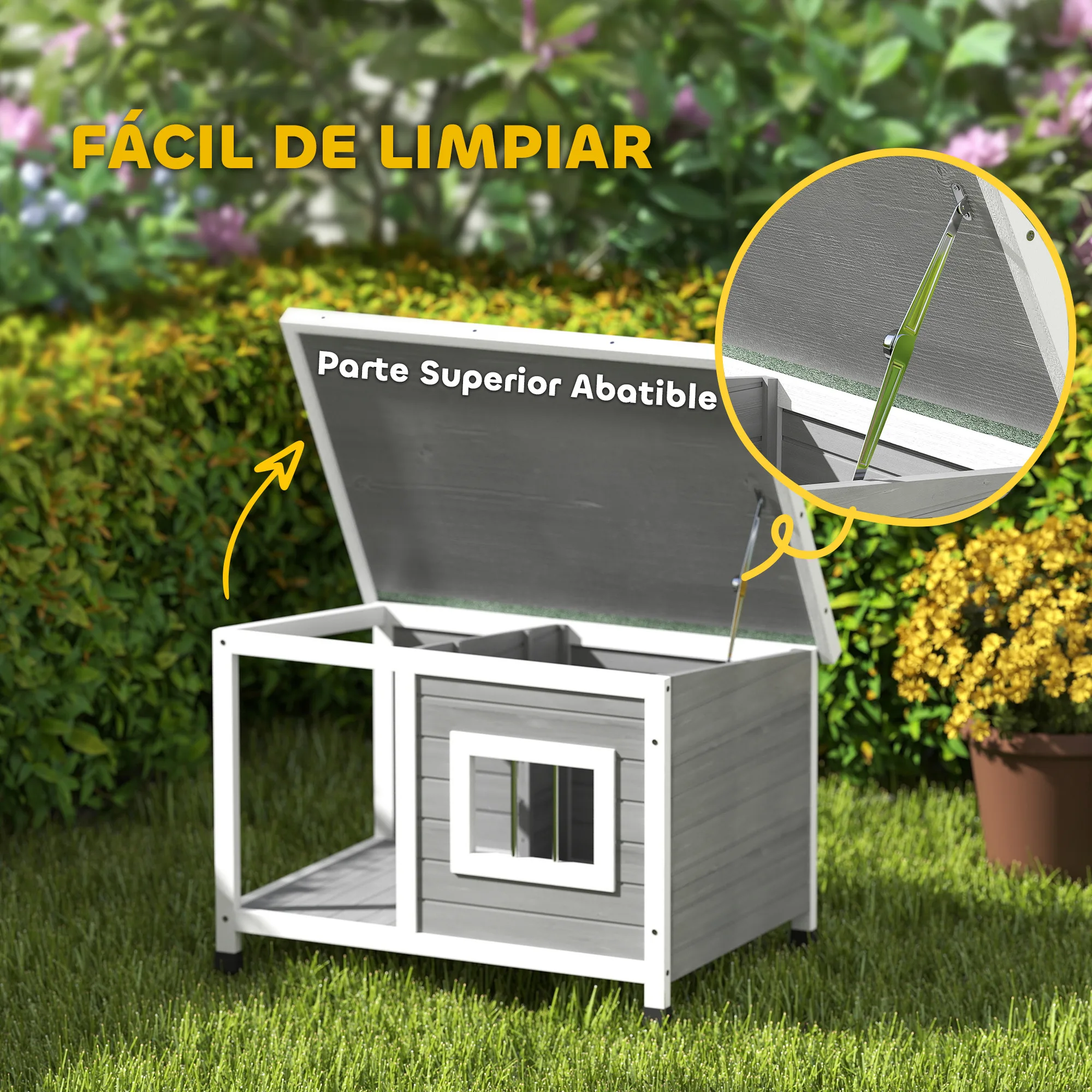 Un techo que se puede abrir te permite alcanzar y acariciar a tu cachorro, darle un hueso y hacer contacto visual mientras le das órdenes. Esta casa para perros exterior de PawHut parece un paraíso para perros, donde podrá combinar su estada en el porche o en el interior sombreado, pero sin dejar de ver a su alrededor a través de la ventana. Su estructura de madera de abeto con techo con tela asfáltica ofrece una buena resistencia a la intemperie.