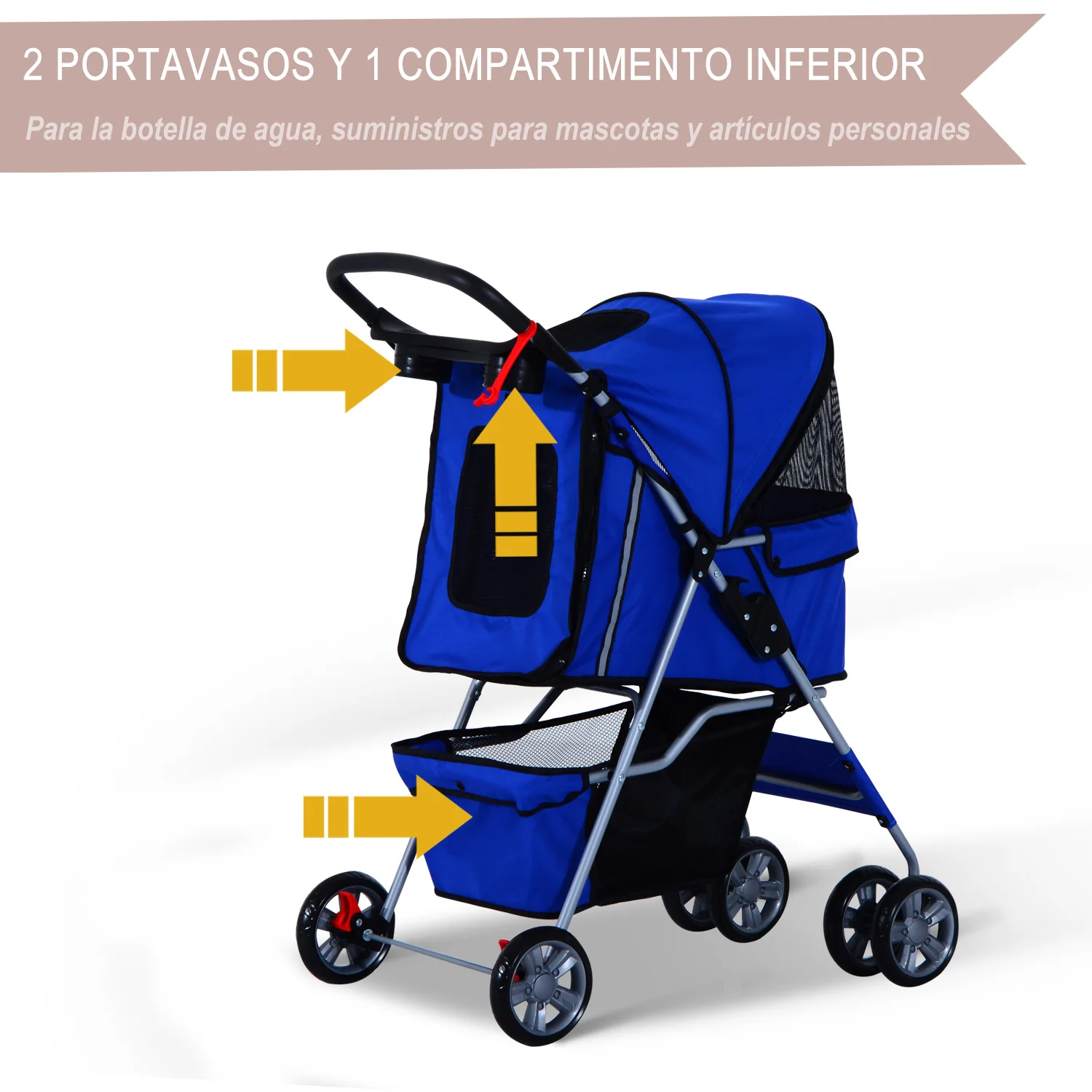 Comprar PawHut Cochecito Plegable Mascotas 75x45x97cm Perros Gatos Carrito Ruedas Azul
