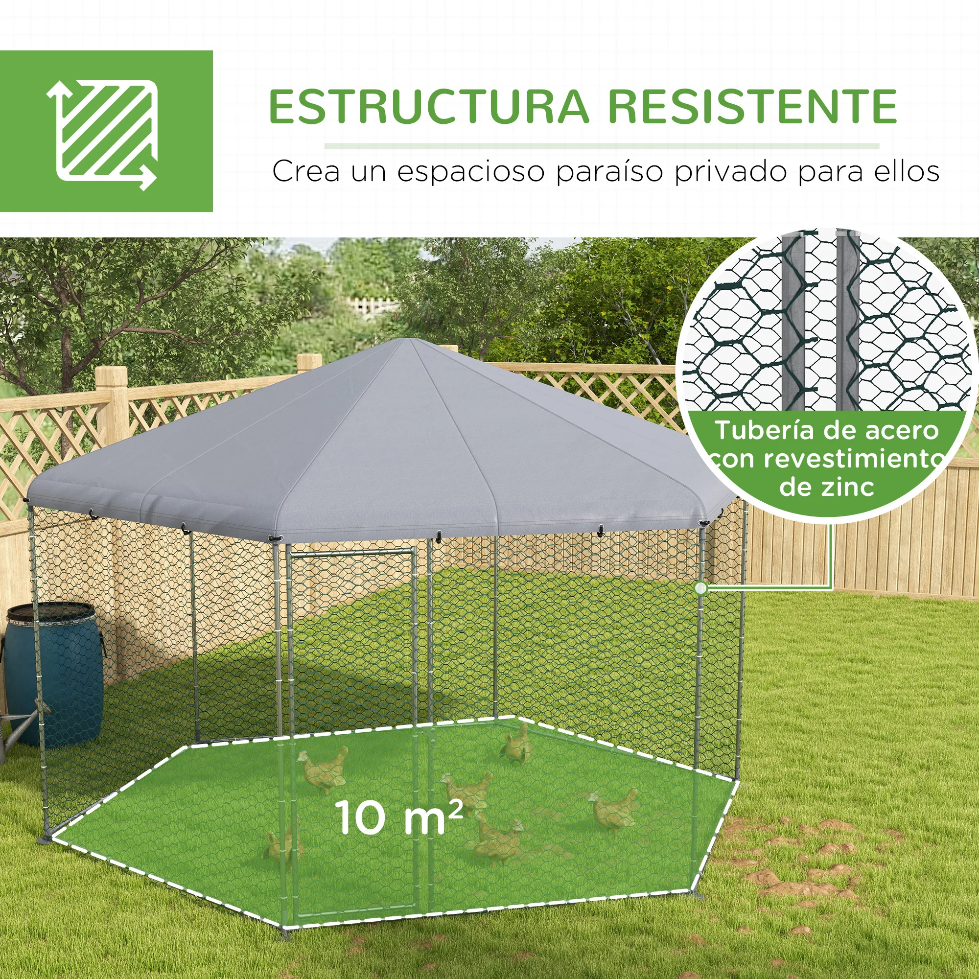 Comprar PawHut Gallinero para Exterior Grande de Acero 400x346x263 cm Jaula de Gallinas en Forma de Hexágono Cubierta de Tela Oxford Resistente a los Rayos UV e Impermeable para Patio Plata