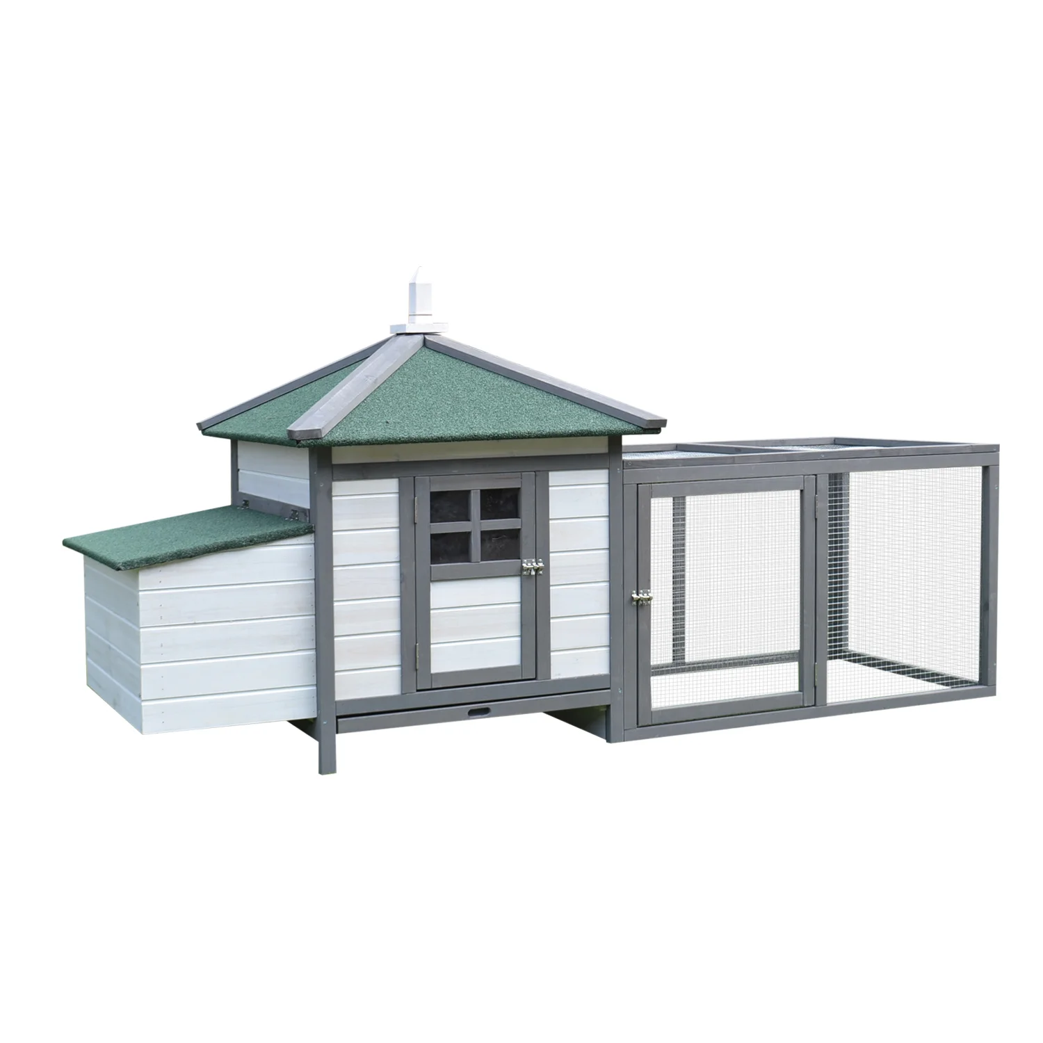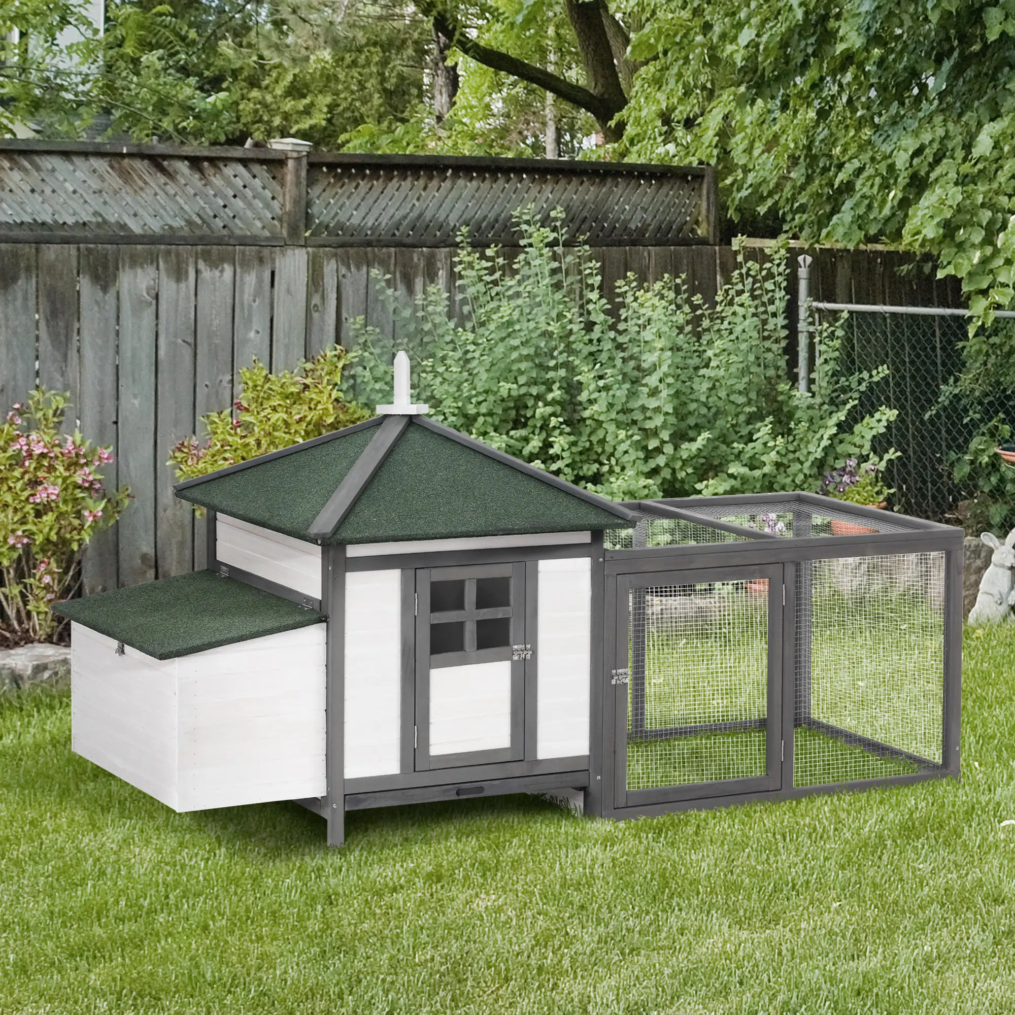 ¿Has visto este gallinero de Outsuny? Hecho de madera de abeto maciza, está compuesta por dos zonas diferenciadas, una abierta para que tus gallinas puedan correr libremente a la vez que están protegidas de sus depredadores, y una caseta cerrada con nido. La caseta y el nido tienen techo asfáltico para mayor resistencia a la intemperie. Y el techo del nido se puede abrir para facilitar la extracción de los huevos.