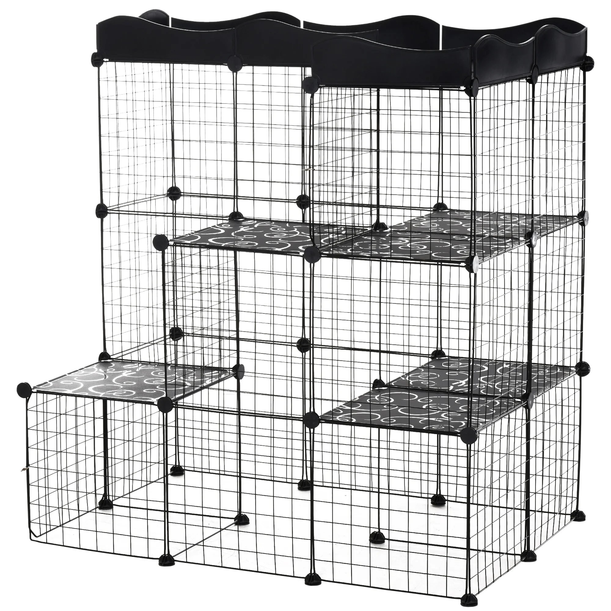 Este recinto para roedores de PawHut es ideal para pequeños animales como conejos y cobayas, ofreciéndoles un espacio amplio y cómodo. El diseño modular te permite ajustarlo según las necesidades de tu espacio, y la rampa asegura que tus mascotas puedan moverse con libertad. La estructura de rejilla metálica proporciona una buena ventilación, evitando la sensación de encierro. Con tres puertas amplias, tienes un acceso fácil para alimentar y cuidar a tus animales cada día.