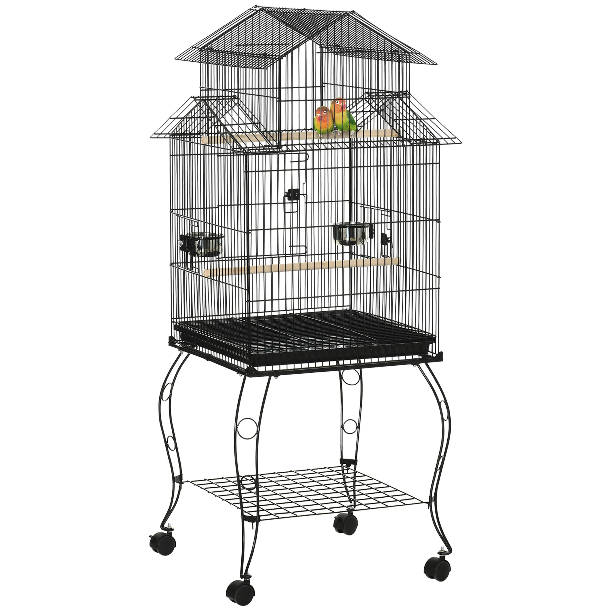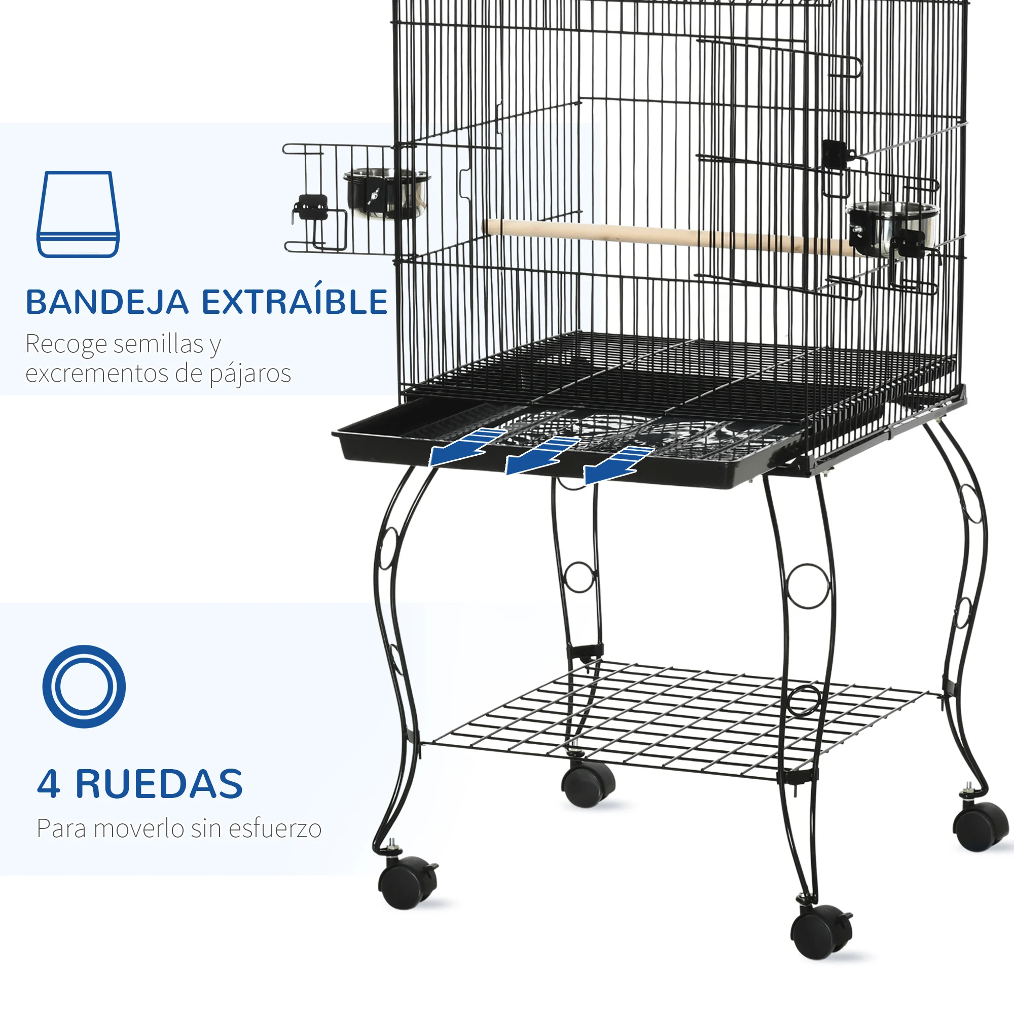 Comprar PawHut Jaula para Pájaros con Ruedas Jaula Grande con Soporte Pajarera con Bandeja Extraíble Puertas Comederos Perchas y Estante Inferior para Cacatúa ninfa Cotorra del Sol 50x49x137 cm Negro