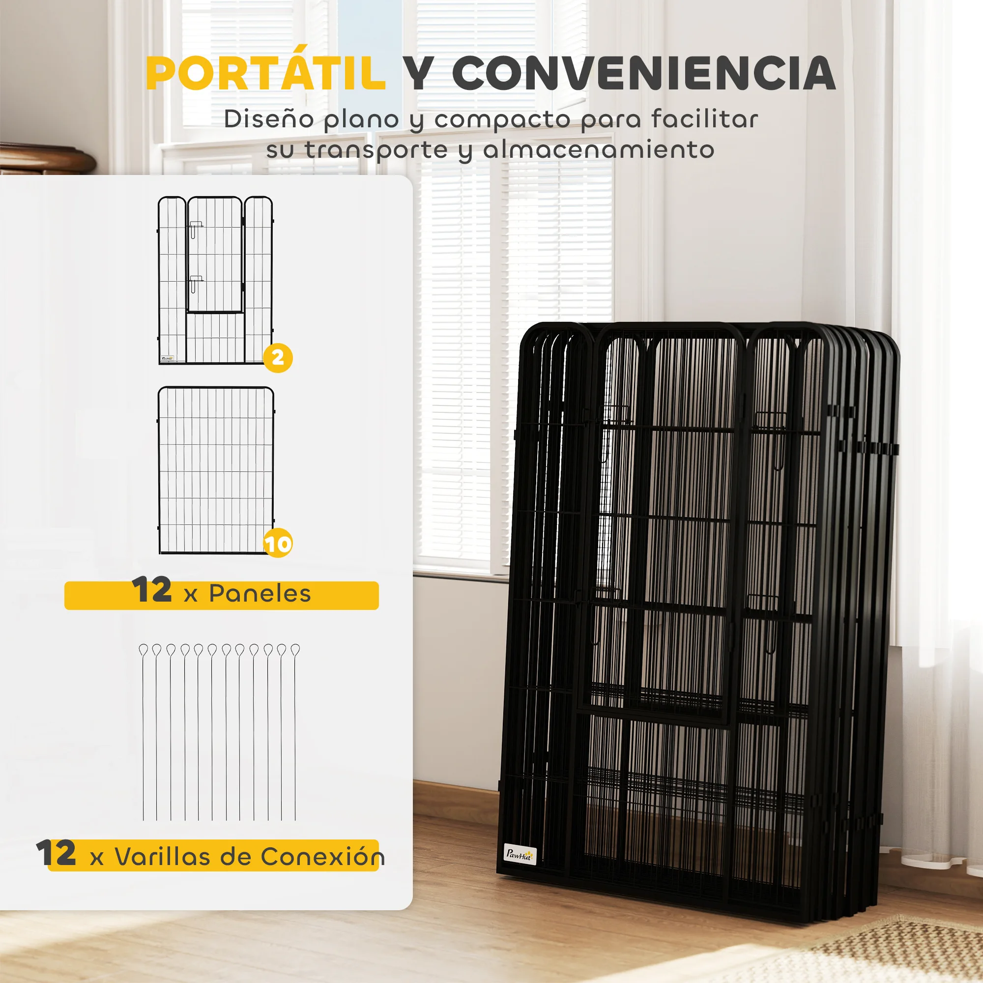 Comprar PawHut Parque para Perros Vallas para Mascotas de 12 Paneles 80x120 cm con 2 Puertas con Pestillo Corralito para Perros Grandes Medianos y Pequeños de Acero para Interior y Exterior Negro