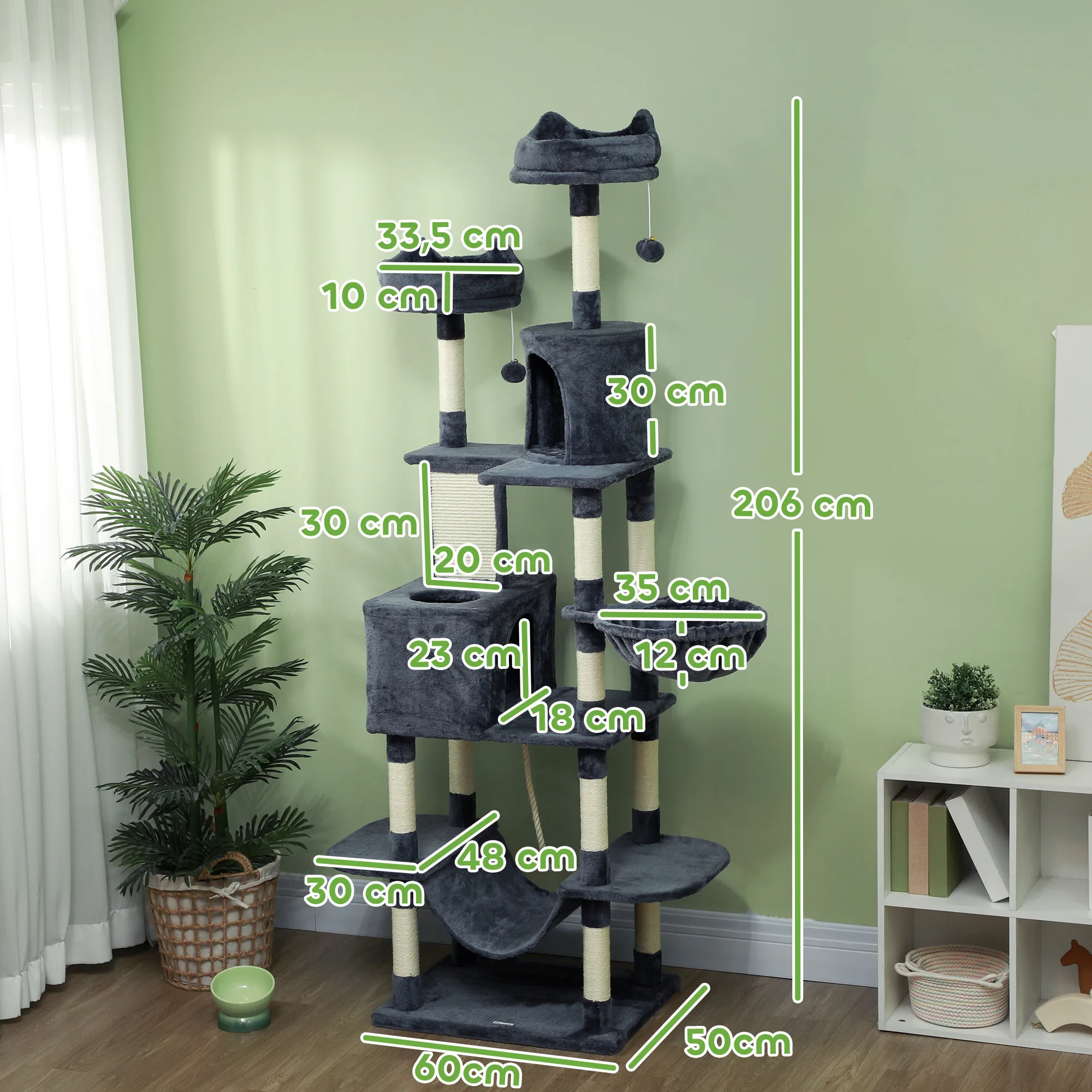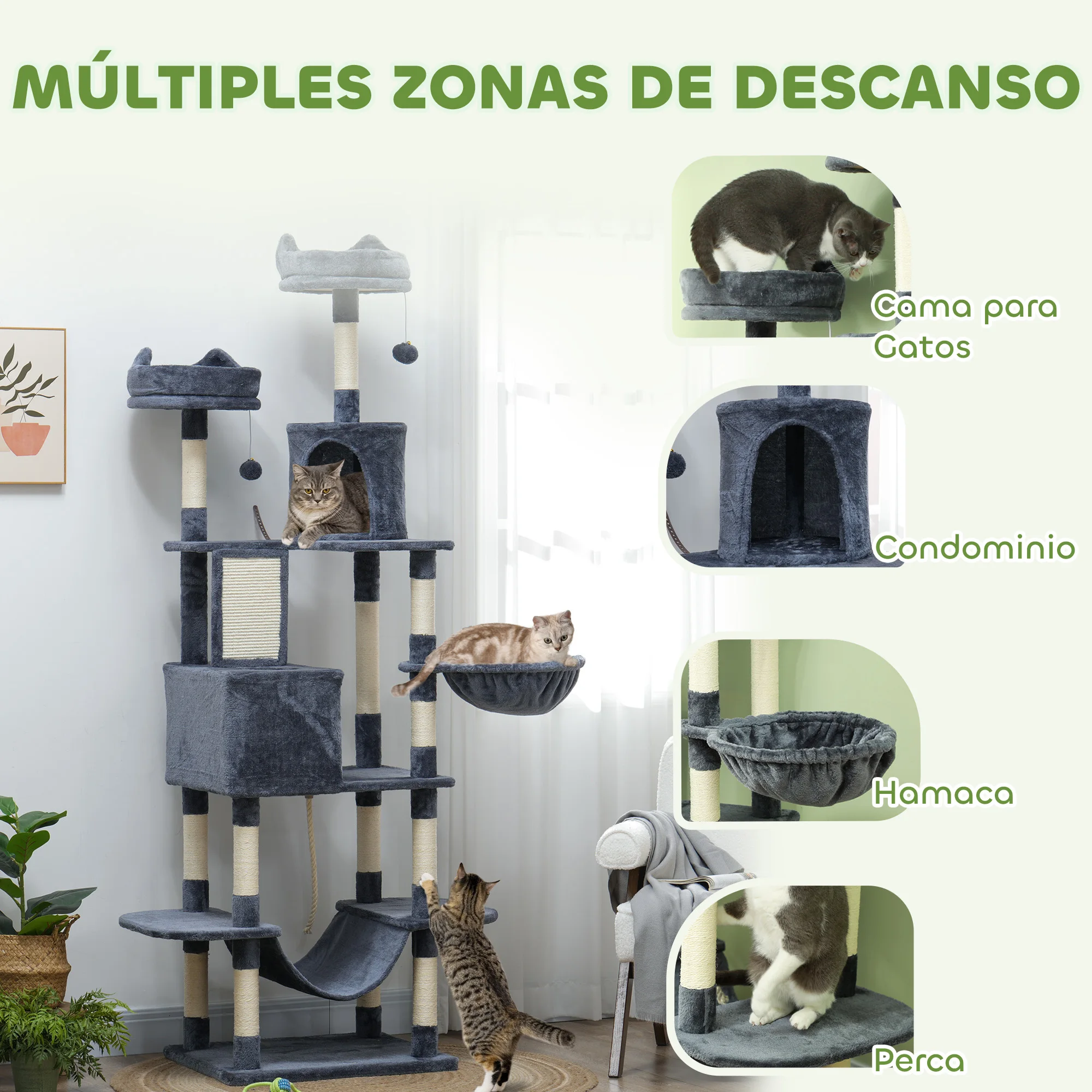Convierte tu hogar en un paraíso para tus felinos con este espacioso árbol para gatos de PawHut. Este gran árbol de gatos ofrece todo lo que necesitan para jugar, descansar y rascar. Con dos camas acolchadas, dos cuevas amplias, varias plataformas y dos hamacas, es perfecto para 1 a 3 gatos de hasta 6 kg.