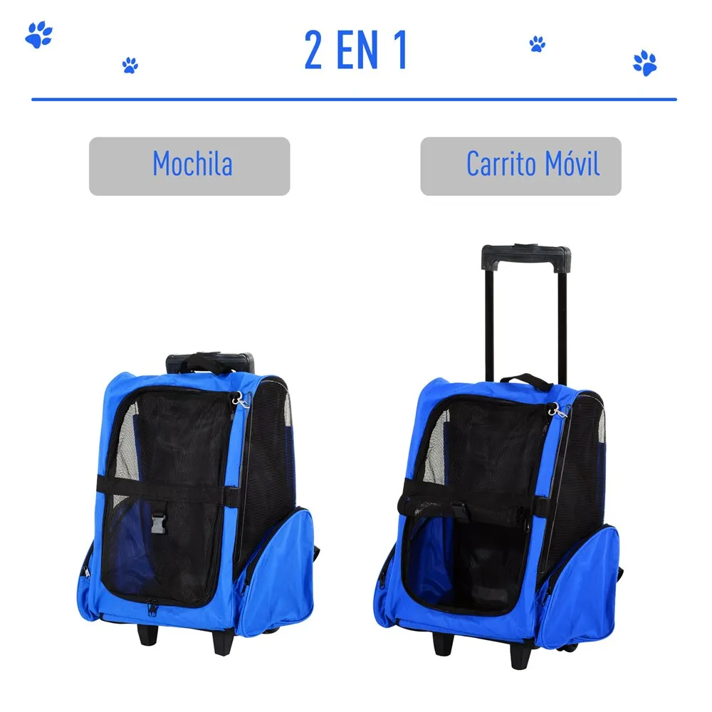 Comprar PawHut Transportin Carrito Perro 2 en 1 Mochila Carrito 36x30x49 cm Mascotas Perro Gato Azul