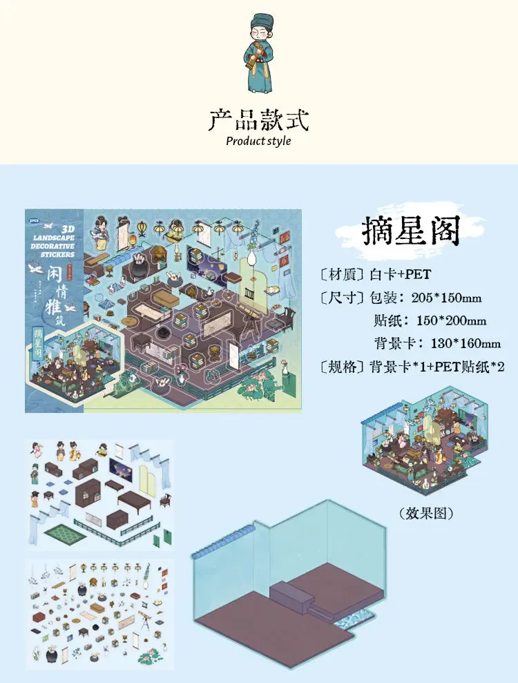 Pegatina 3D de serie de construcción informal y elegante, pegatina apilable, decoración estética para habitación, diario para niños Adu, regalo para aliviar el estrés