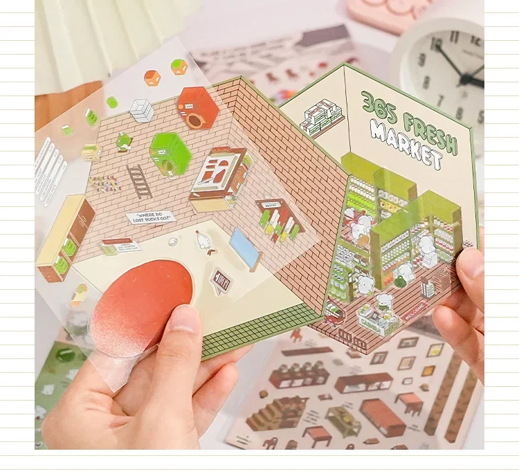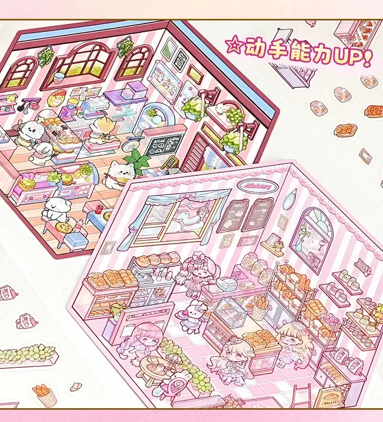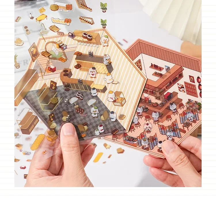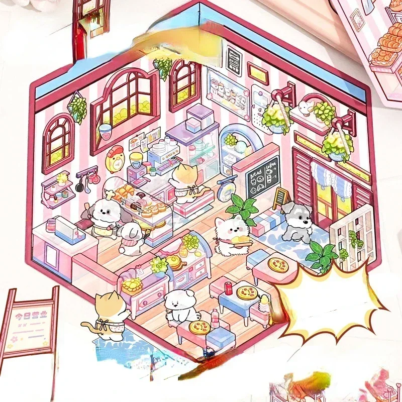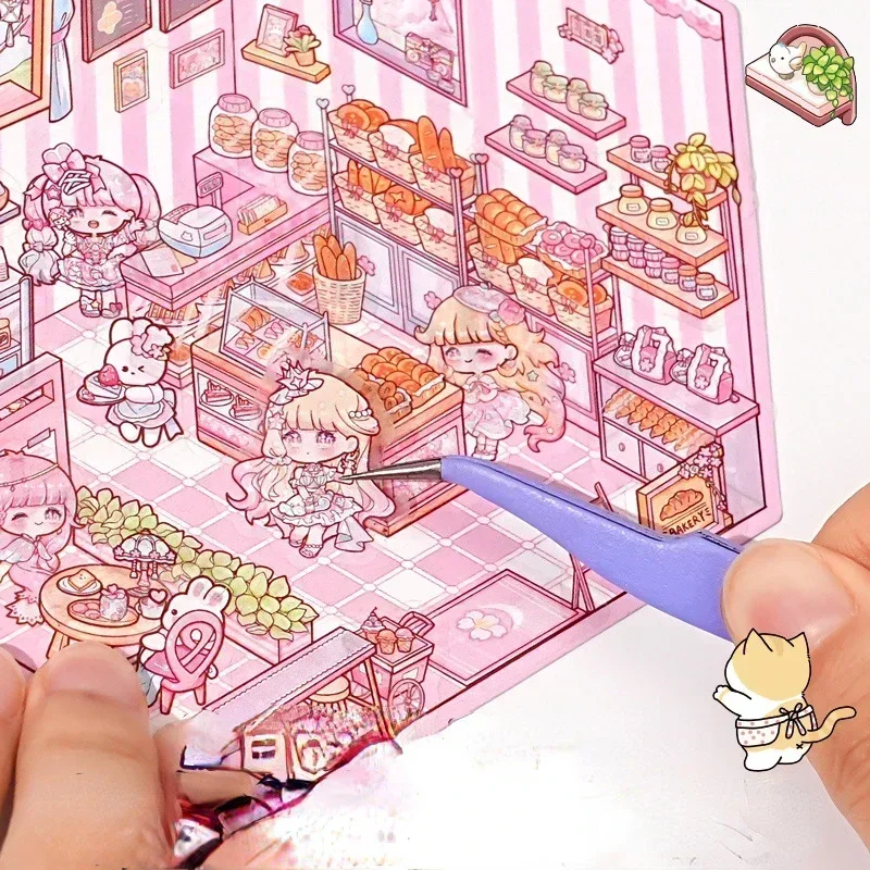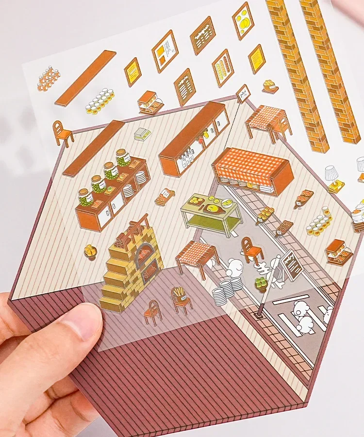 Pegatina DIY de dibujos animados para niños, casa de juego, escena de cabina, apilamiento, pegado, cuenta de mano, regalo para chico, bebé, juego de estudiante, juguete