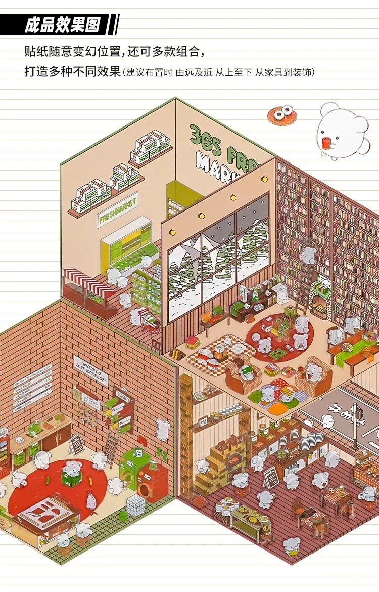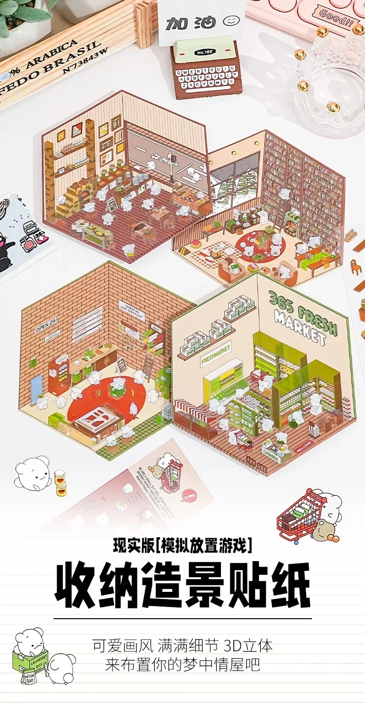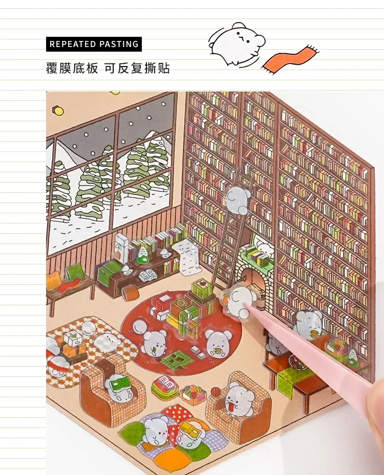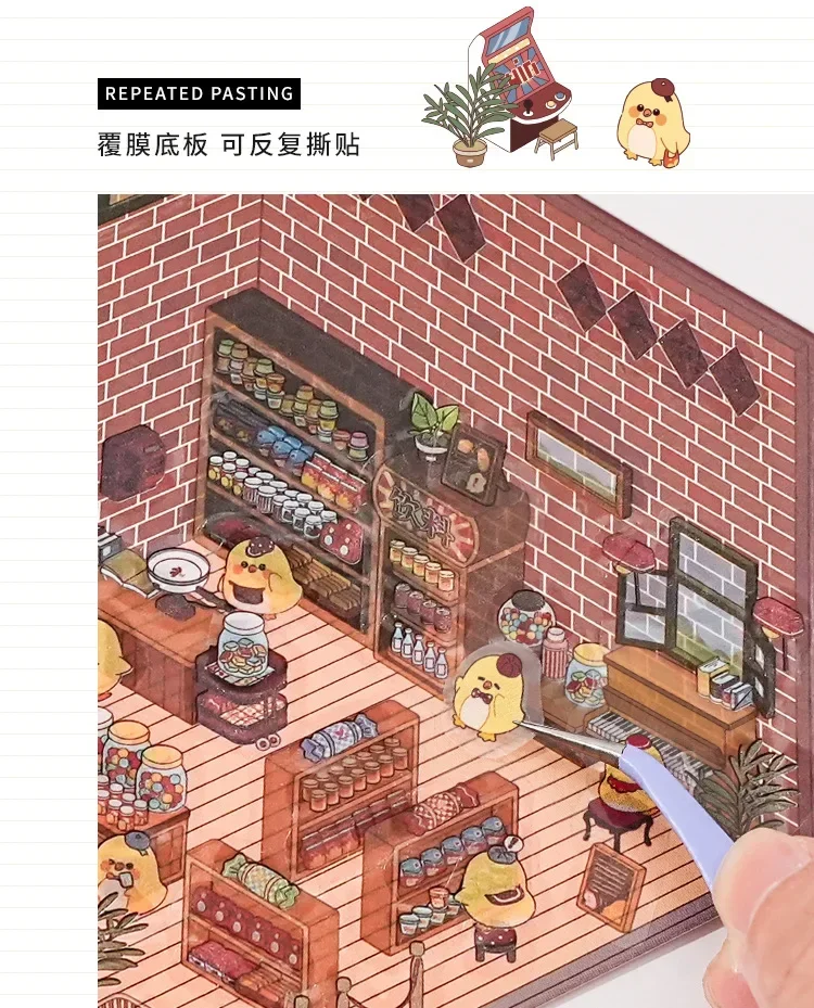 Pegatina DIY de dibujos animados para niños, casa de juego, escena de cabina, apilamiento, pegado, cuenta de mano, regalo para chico, bebé, juego de estudiante, juguete