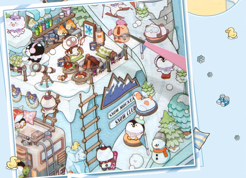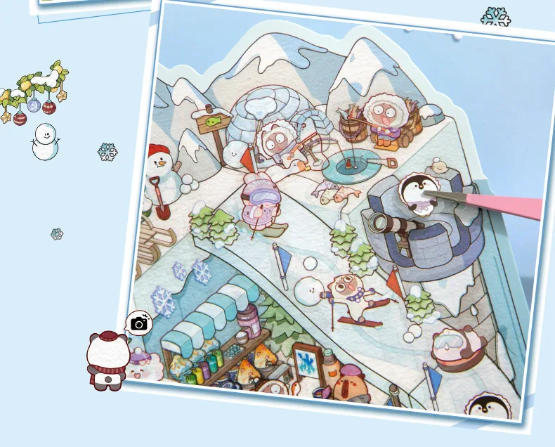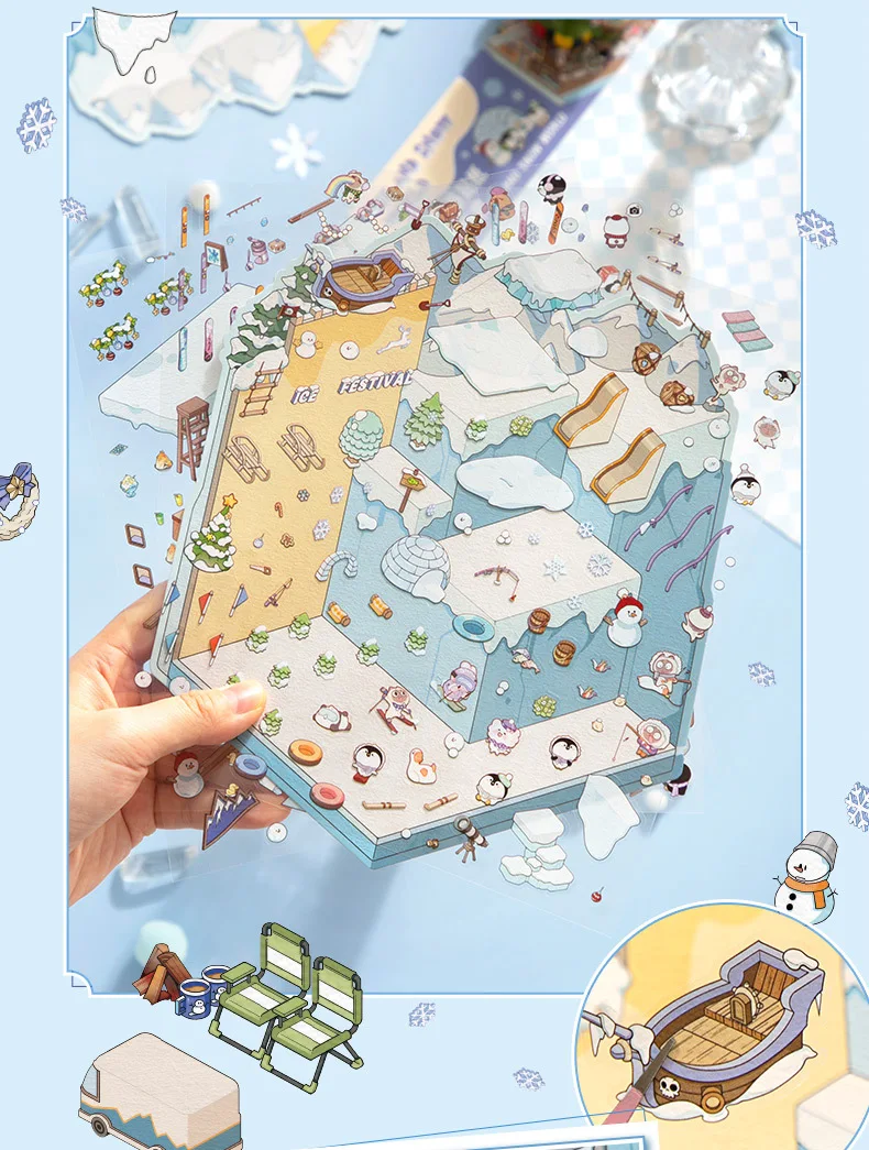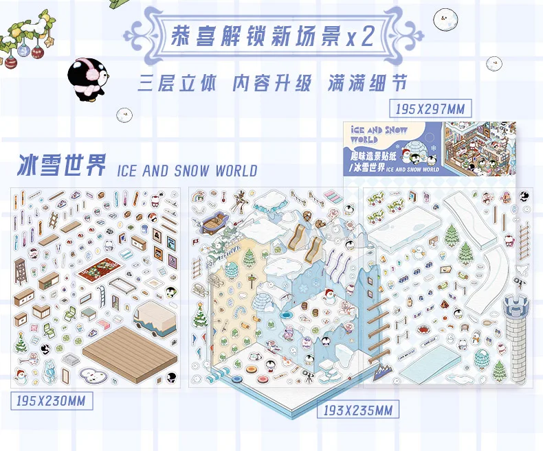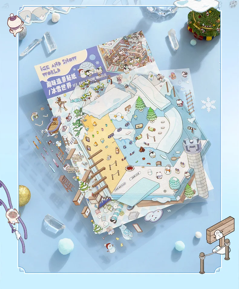 Pegatina de escena 3D del mundo de nieve de hielo de talla grande, pegatinas de paisajismo 2.5D en miniatura para cabina, pegatina apilable, regalo de Navidad