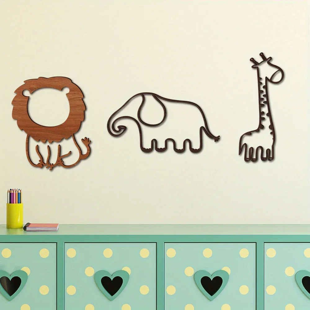 Pegatina de madera de dibujos animados 3D, pegatina de animales para pared, decoración de habitación de bebé, sala de estar, dormitorio, regalo del Día de Acción de Gracias