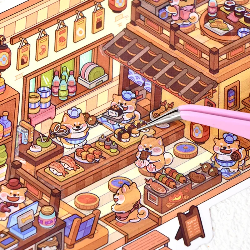 Pegatina de paisaje casero de dibujos animados 2.5D, escena de cabina, pegatina de juego DIY, regalo de cumpleaños para Festival para estudiantes