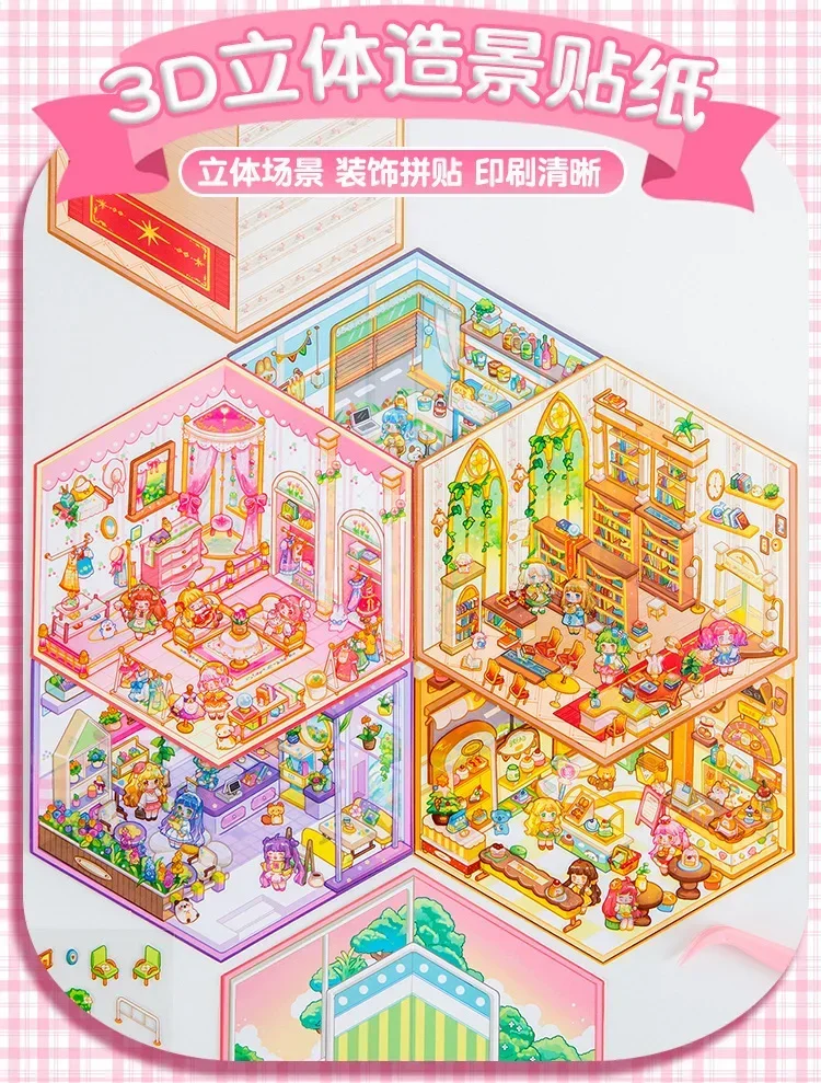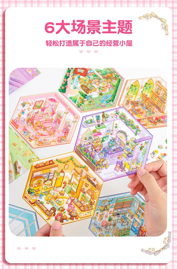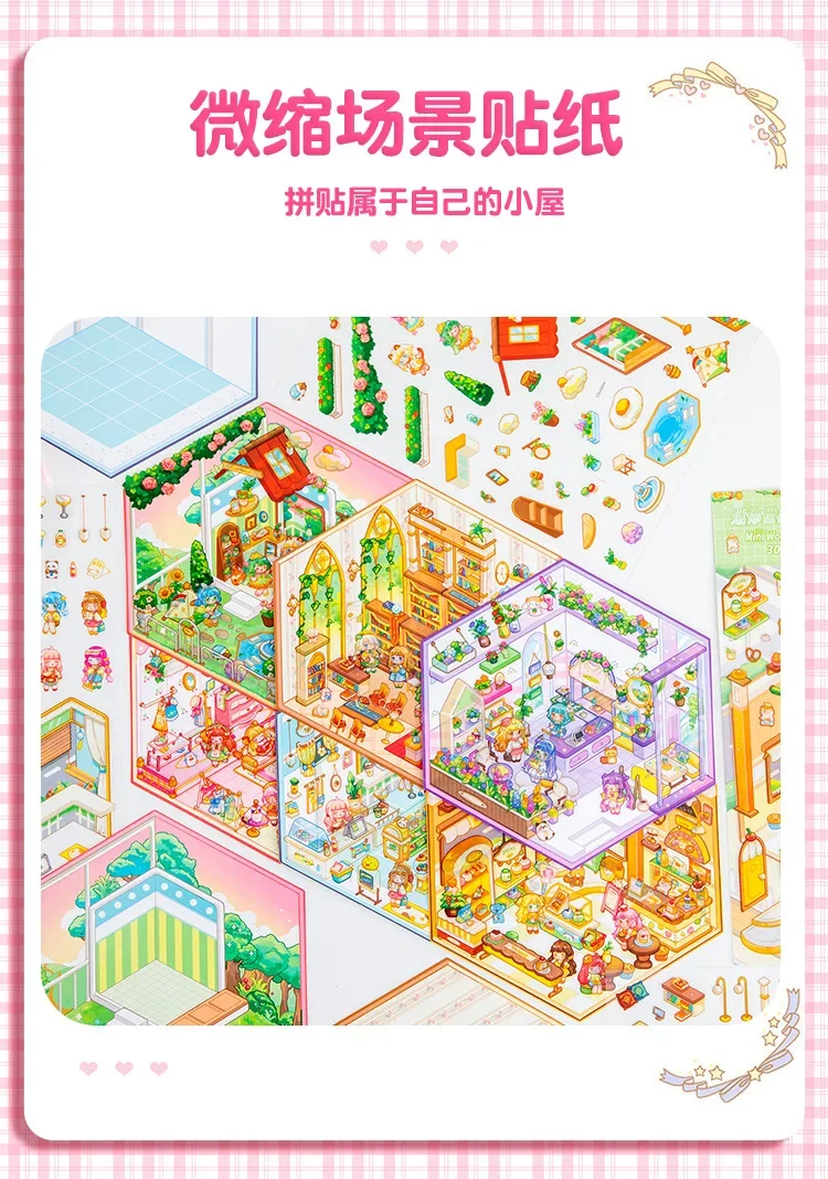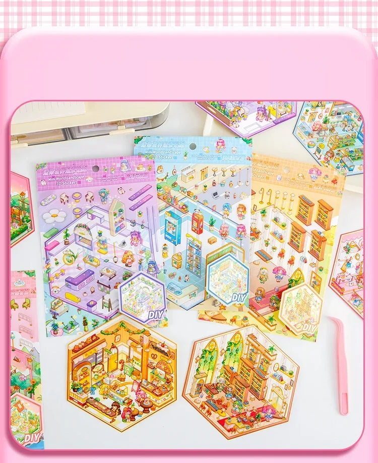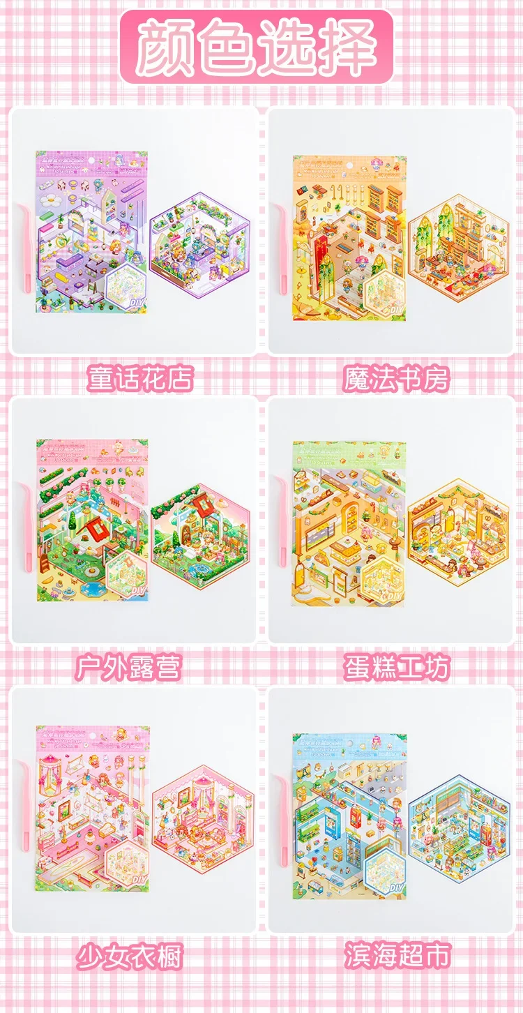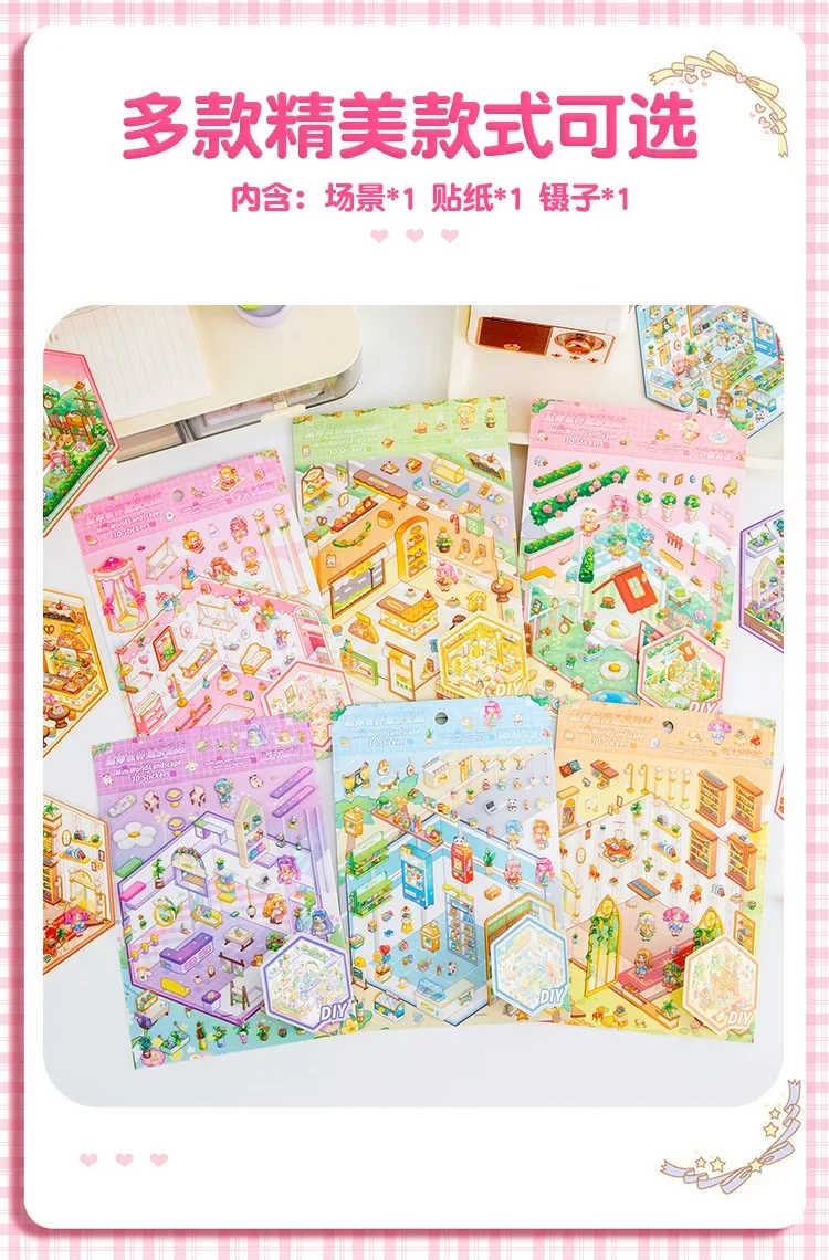 Pegatina de paisaje de dibujos animados Mini mundo DIY bolsillo escena de cabina 3D apilamiento pegado regalo de cumpleaños de Navidad para chico
