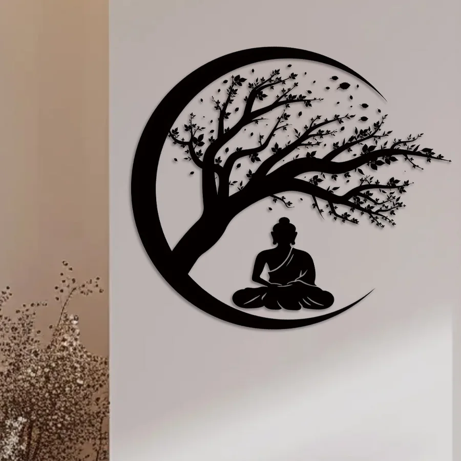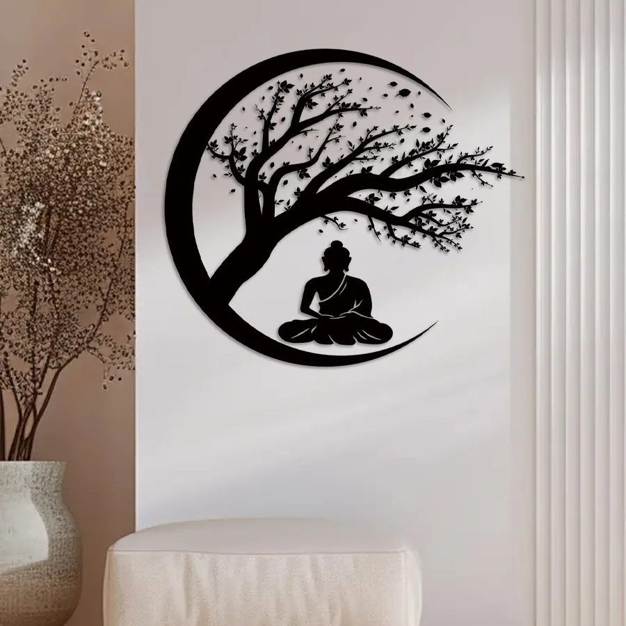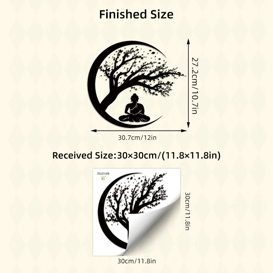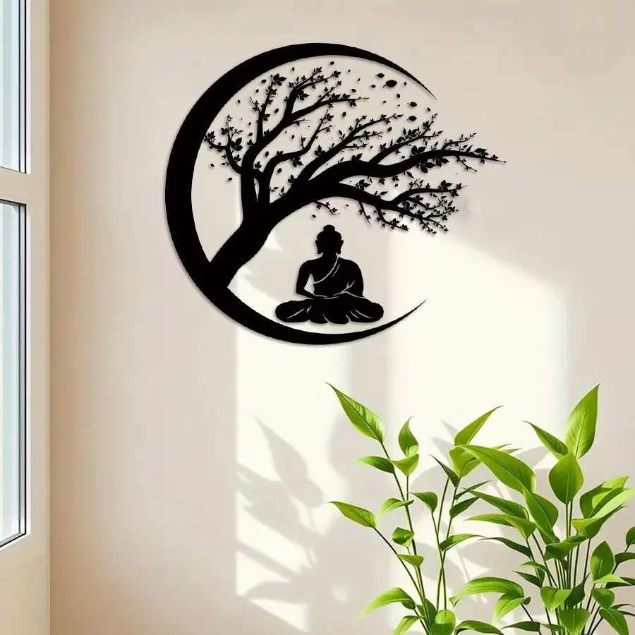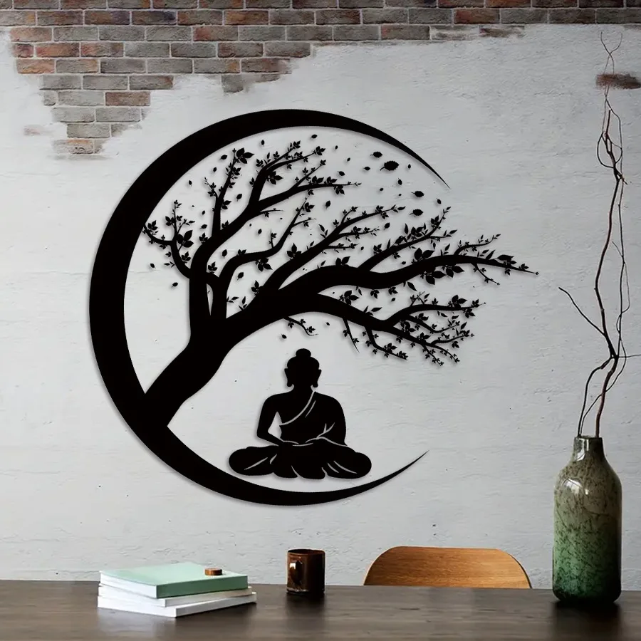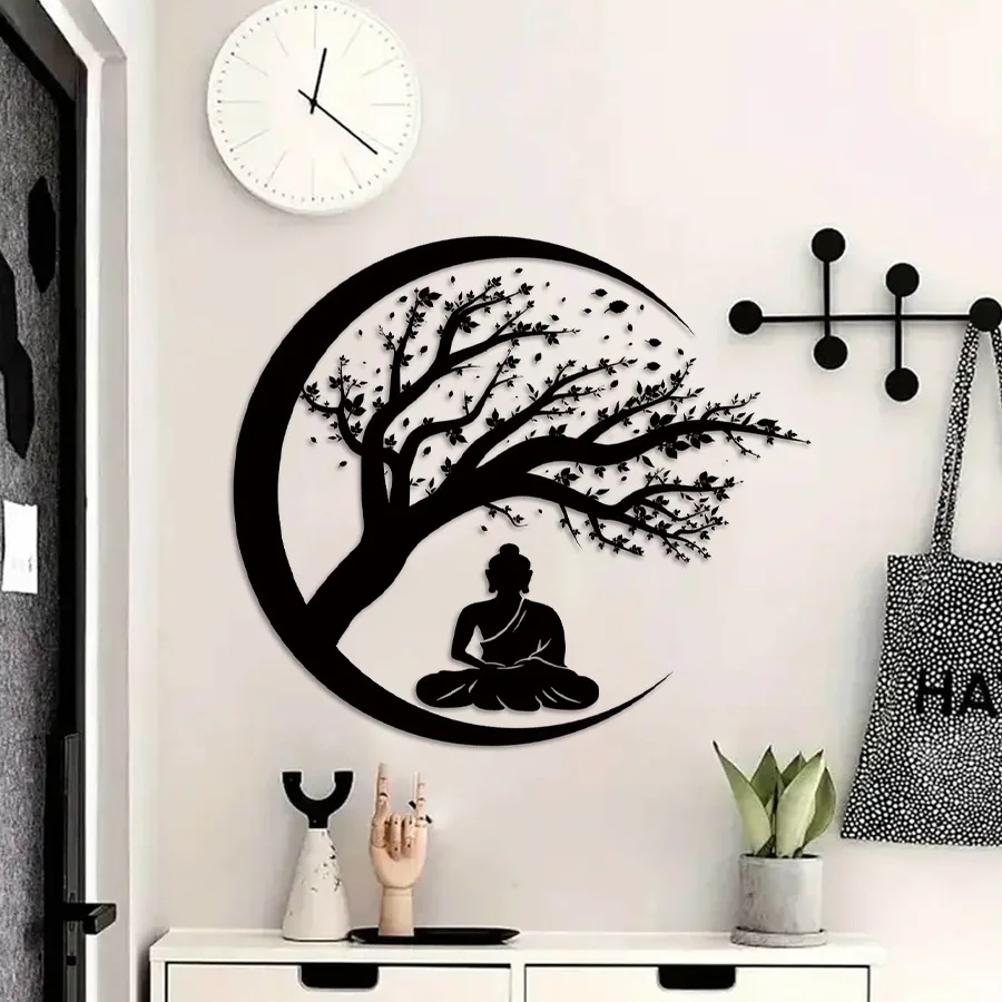 Comprar Pegatina de pared autoadhesiva de monje de meditación bajo el árbol, pegatina decorativa de embellecimiento para el hogar estilo Wabi sabi
