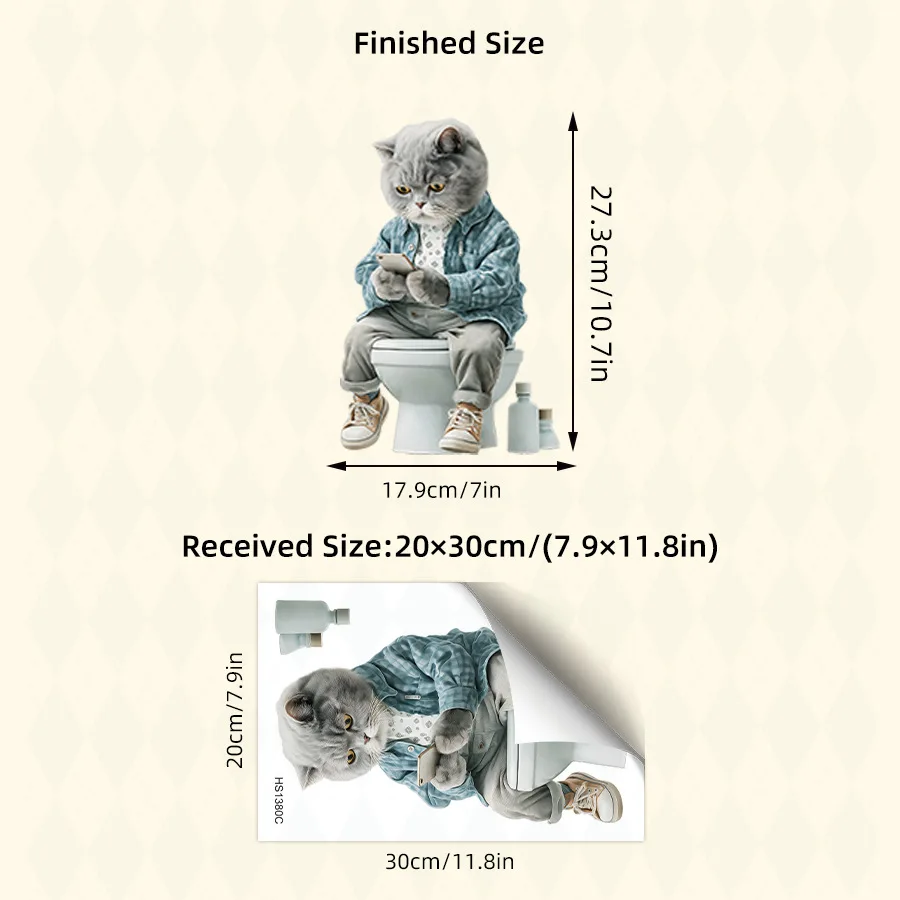 Pegatina de pared de gato para inodoro, pegatina de pared autoadhesiva de simulación de dibujos animados, decoración de tapa de inodoro, pegatina de pared