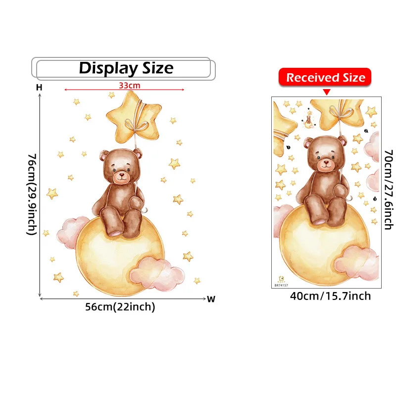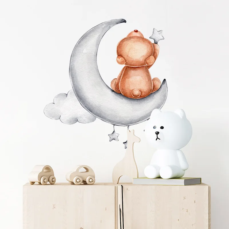 Comprar Pegatina de pared para habitación de bebé, oso de peluche en el arco iris, estrella, calcomanías de pared para habitación de niños, pegatina Interior para dormitorio de bebé