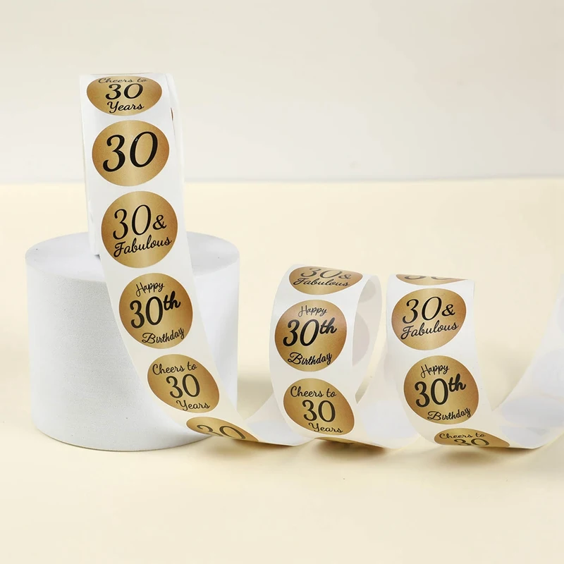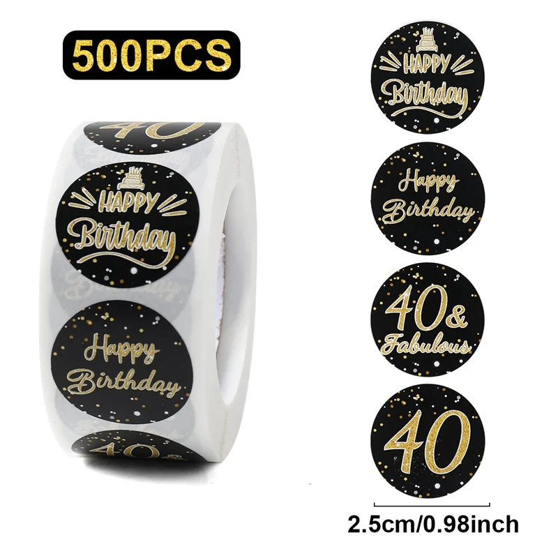 Pegatina redonda de oro negro para fiesta de Cumpleaños de adultos, suministros de regalo de recuerdo para aniversario, 500, piezas, 30, 40, 50 cumpleaños