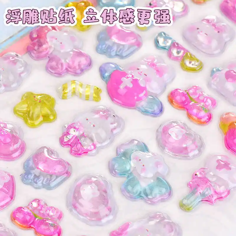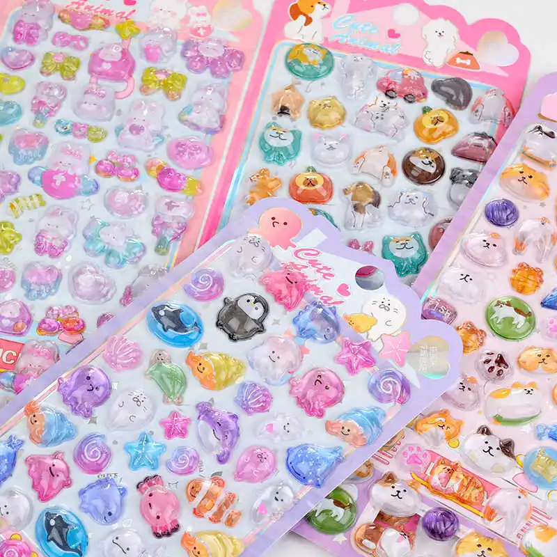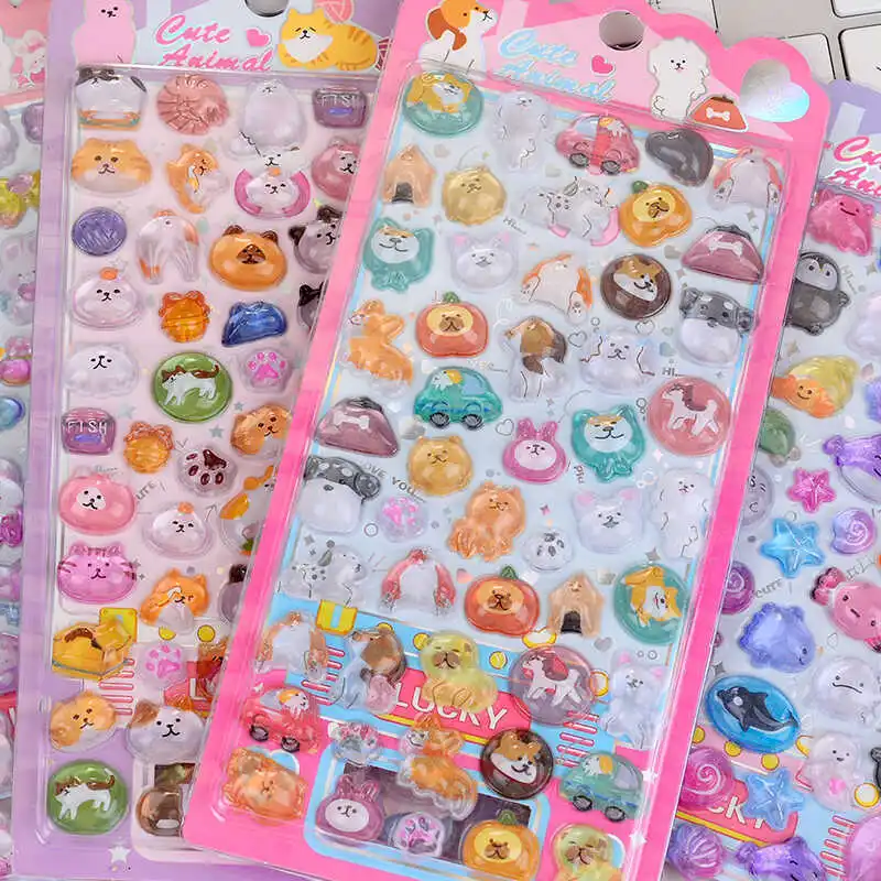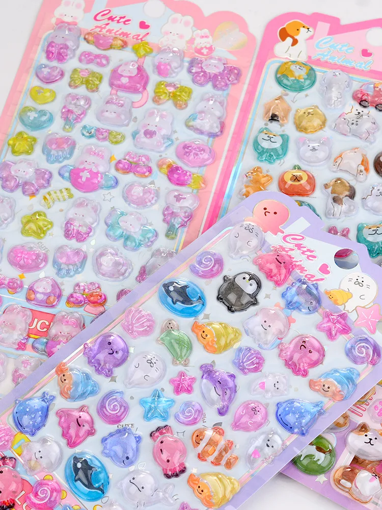 Pegatina en relieve 3D de animales bonitos de dibujos animados, pegatinas de cristal de diamante, pasta de decoración para teléfono móvil, pegatinas coreanas