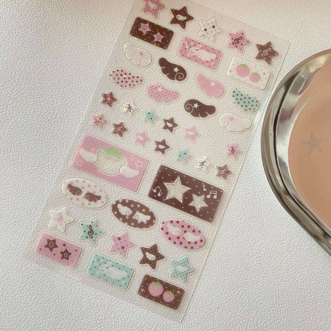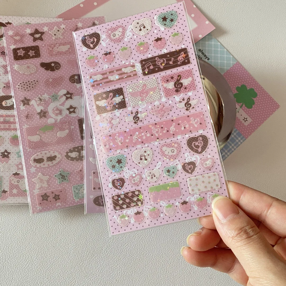 Pegatina de tarjeta de película Flash de estrella de fresa, nota musical rosa y marrón, pegatina decorativa coreana para funda de teléfono móvil