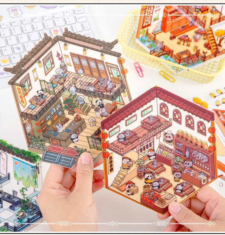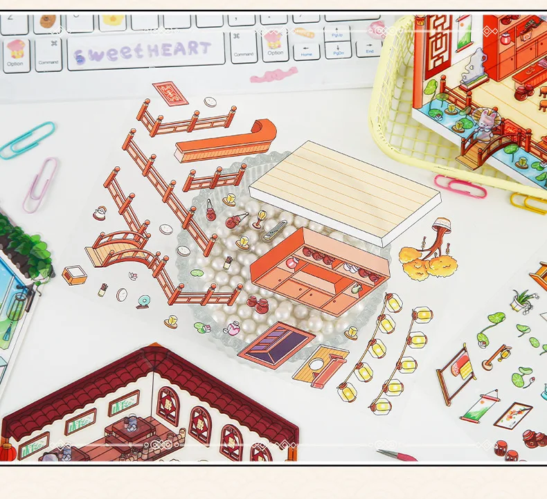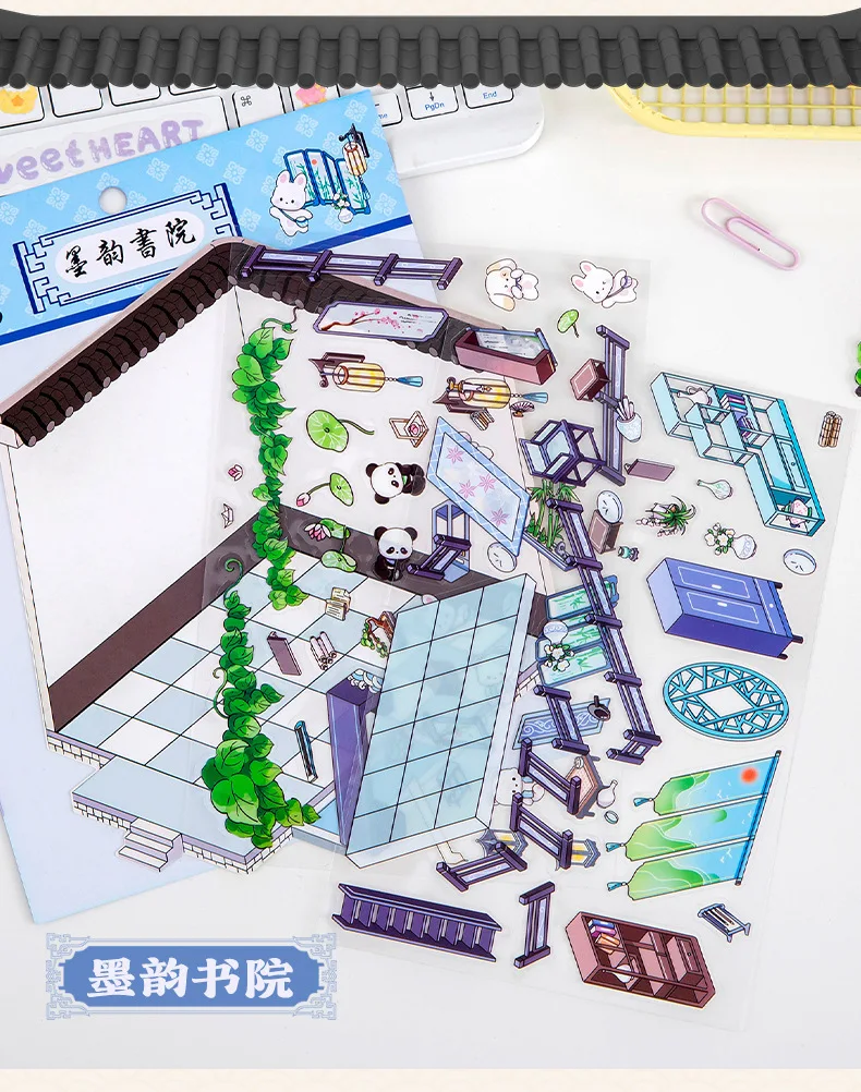 Pegatinas 3D bonitas y creativas para diario, pegatinas impermeables, Material de papel, Kit de álbum de recortes, material escolar para niñas