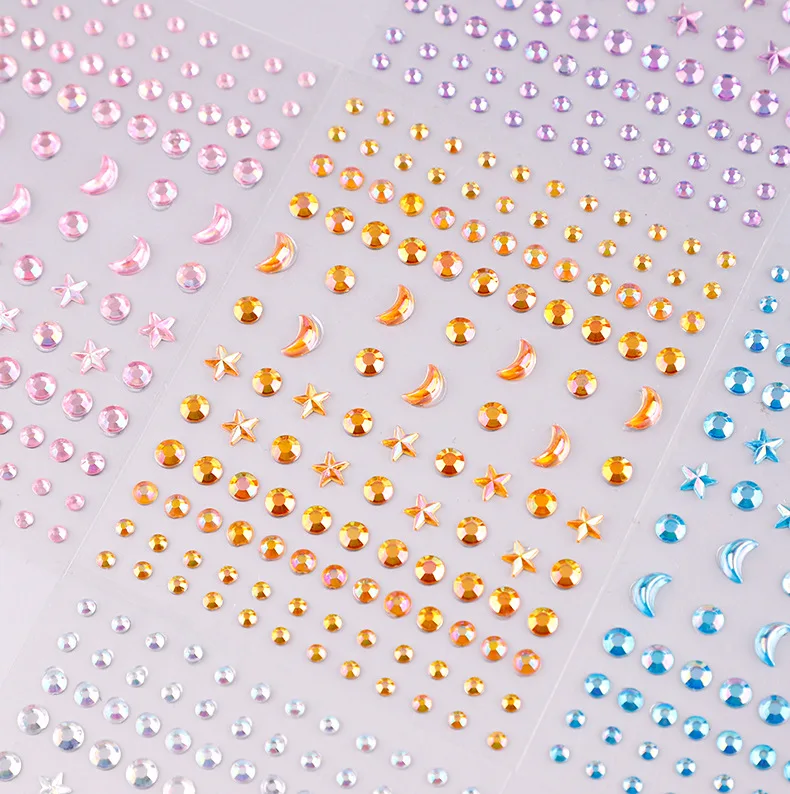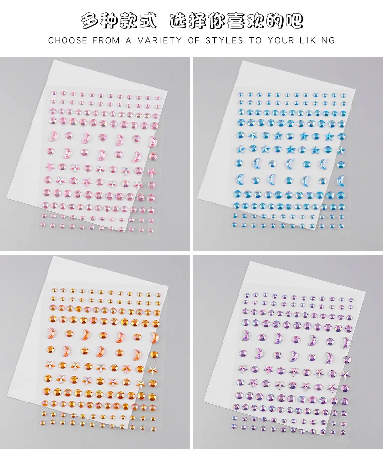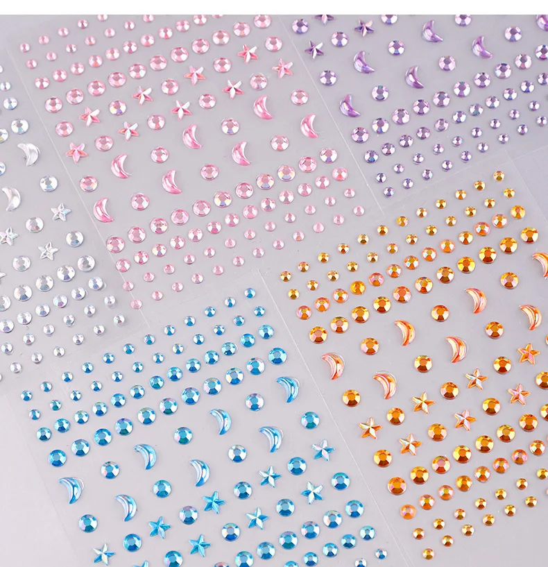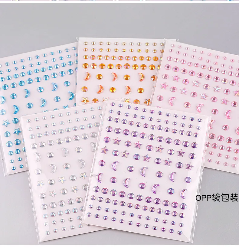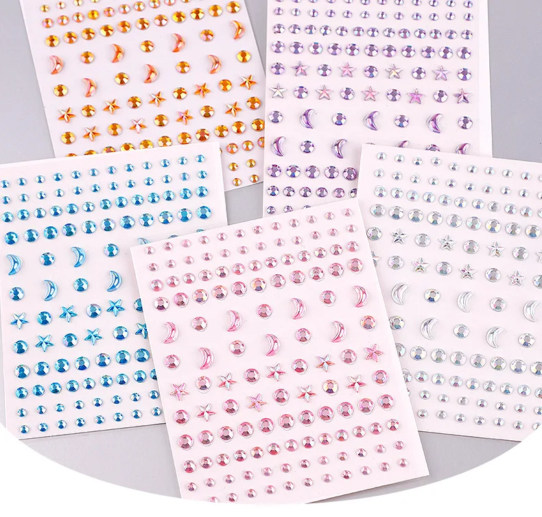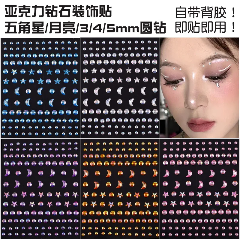 Comprar Pegatinas acrílicas con diamantes de imitación para ojos, estrella, Luna, diamante, escenario, fiesta, música, Festival, cosméticos Diy, pegatinas para uñas, tatuaje temporal