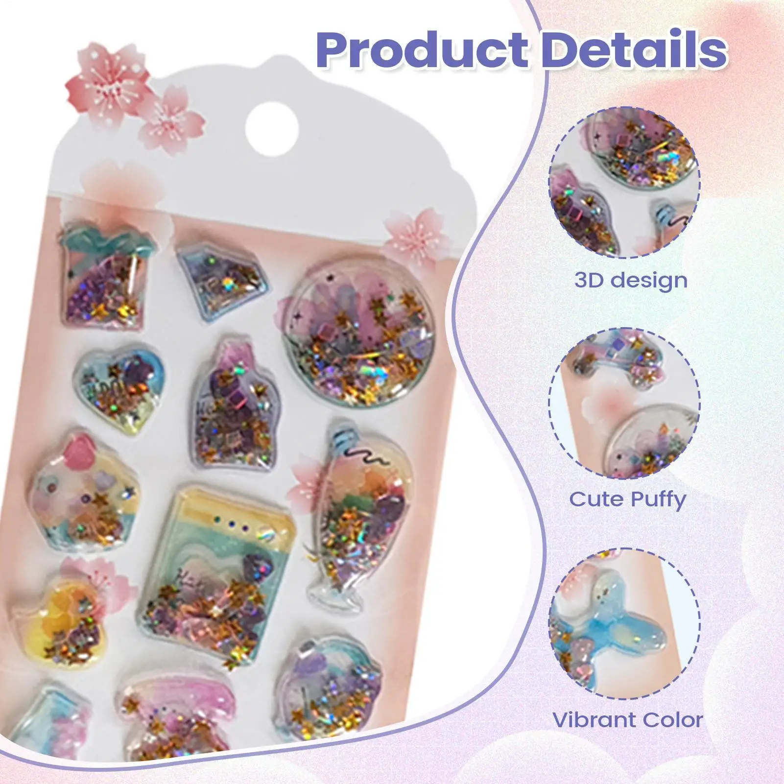 1.Decoración divertida: con una forma única de gota de agua en 3D con lentejuelas brillantes y purpurina en el interior, estas pegatinas para niños transforman fundas de teléfonos estándar y botellas de agua en accesorios personalizados, fomentando la exploración artística en fiestas de cumpleaños o reuniones familiares.