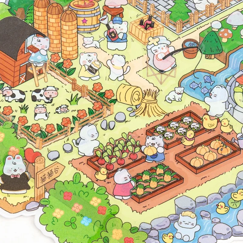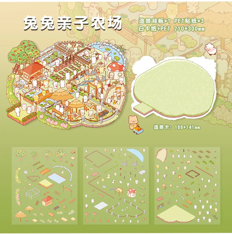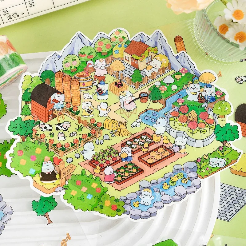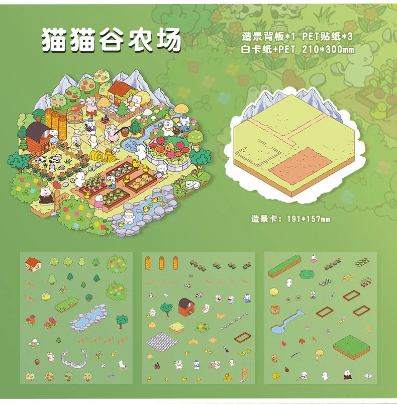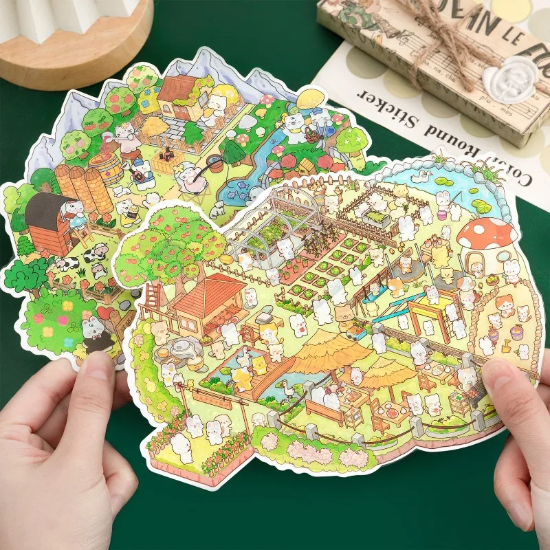 Pegatinas de escena 3D de talla grande, escena de cabina de dibujos animados, calcomanías de escena DIY, álbum de recortes, apilamiento y pegado, pegatina para hacer paisaje