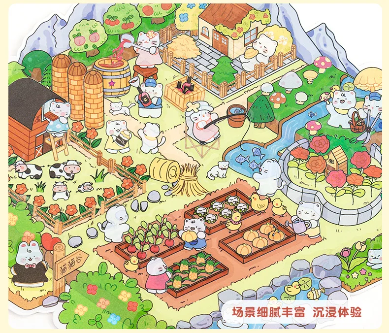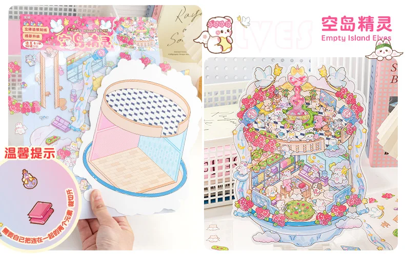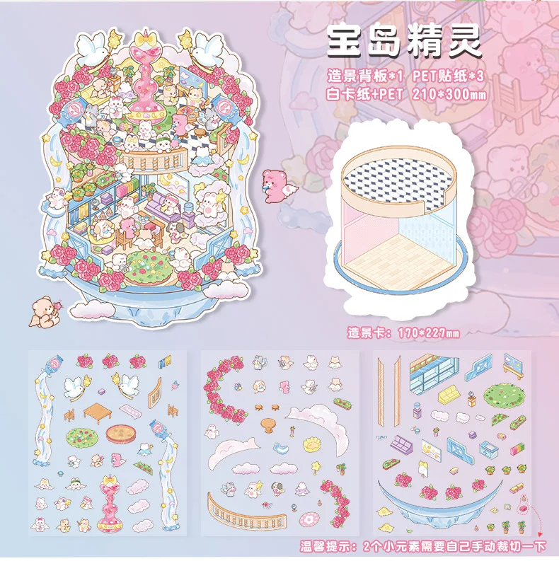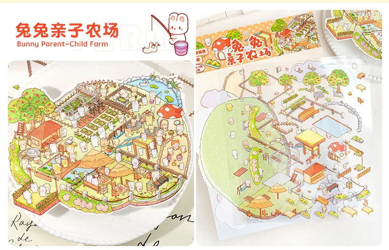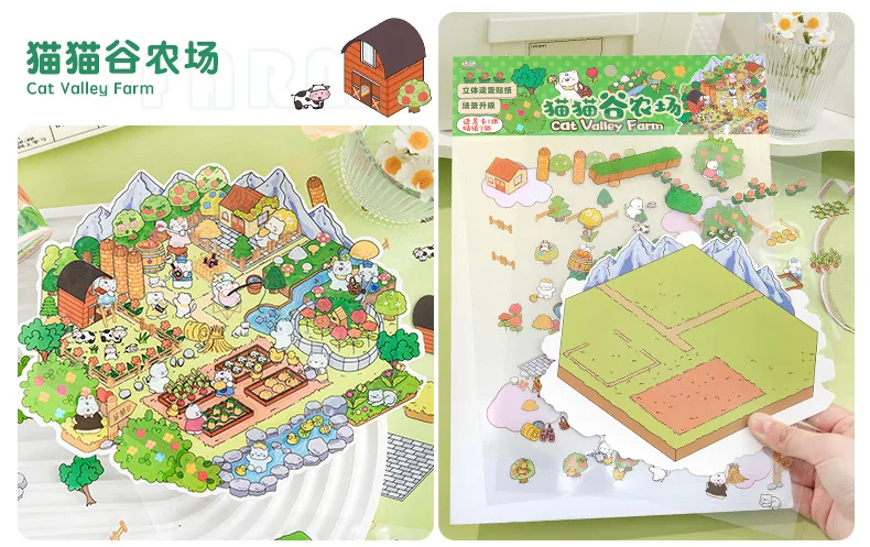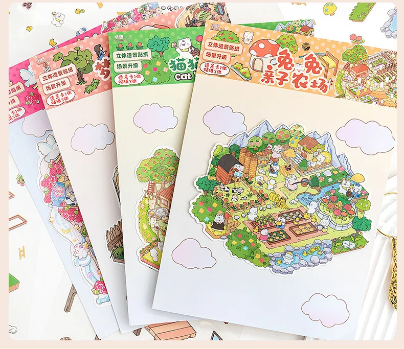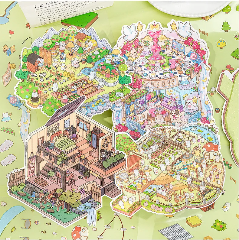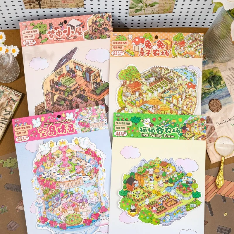 Comprar Pegatinas de escena 3D de talla grande, escena de cabina de dibujos animados, calcomanías de escena DIY, álbum de recortes, apilamiento y pegado, pegatina para hacer paisaje