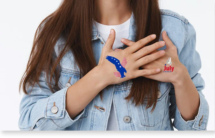 Pegatinas faciales de polvo de plata del Día de la Independencia Americana, pegatinas de tatuaje impermeables temporales, pegatina de tatuaje falso pintada de EE. UU. Para fiesta