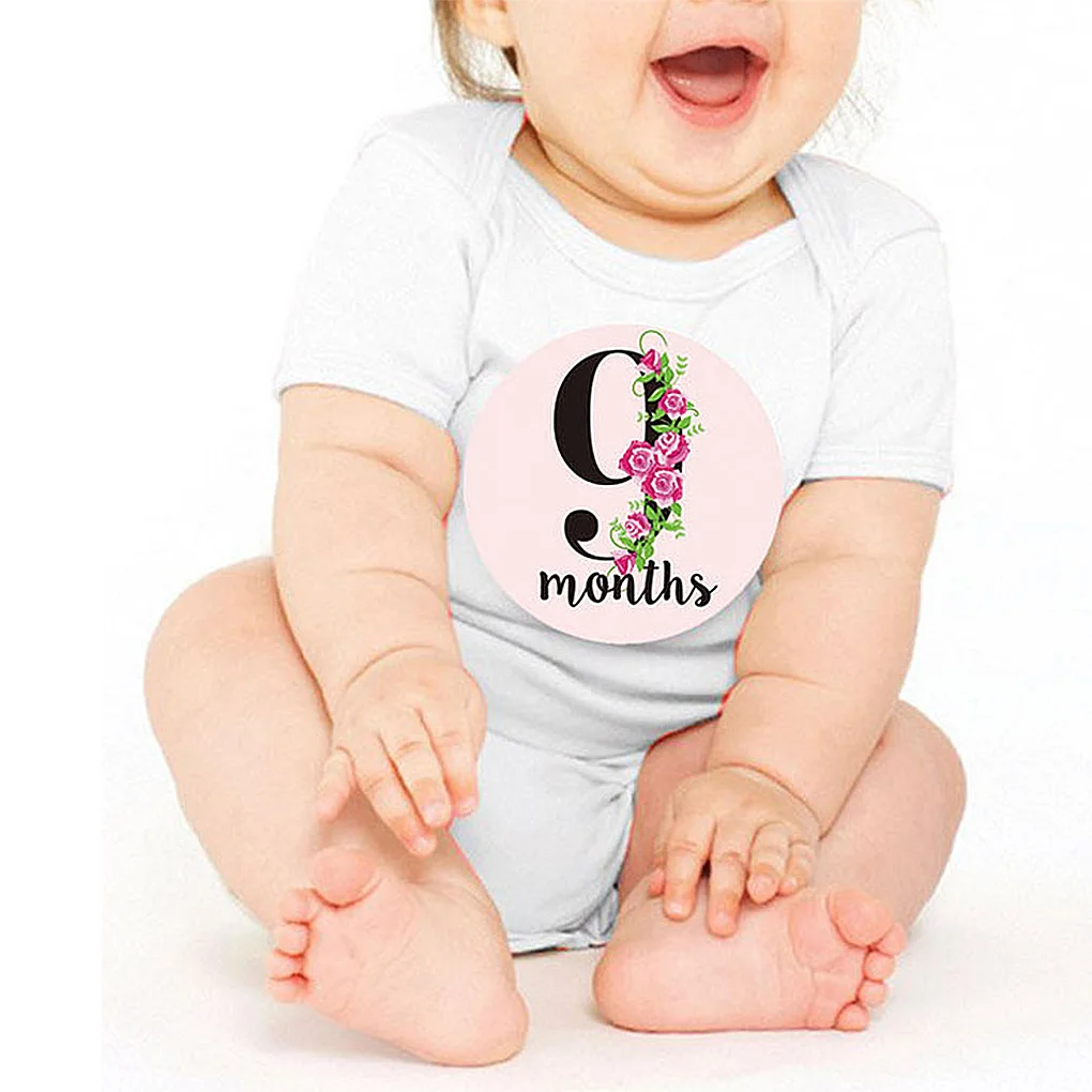Comprar Pegatinas de hitos mensuales para bebés, 12 piezas, pegatinas florales para el mes de las niñas recién nacidas, accesorios para fotos del primer año