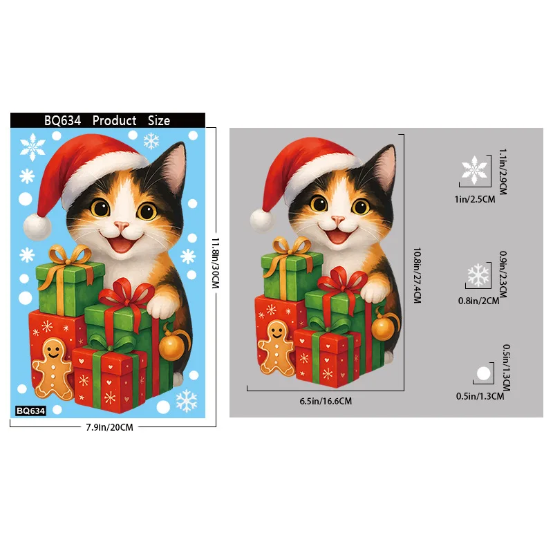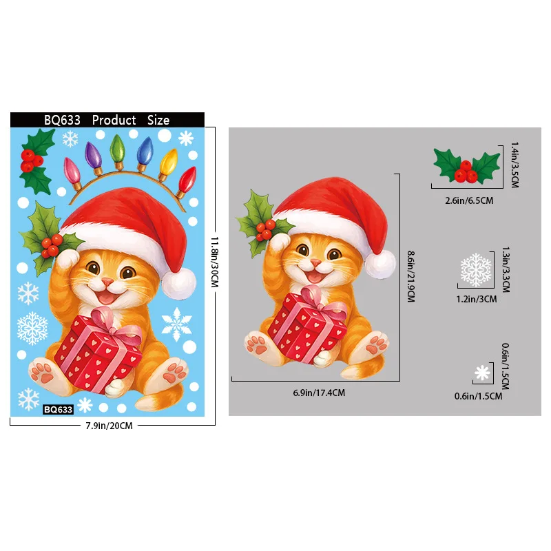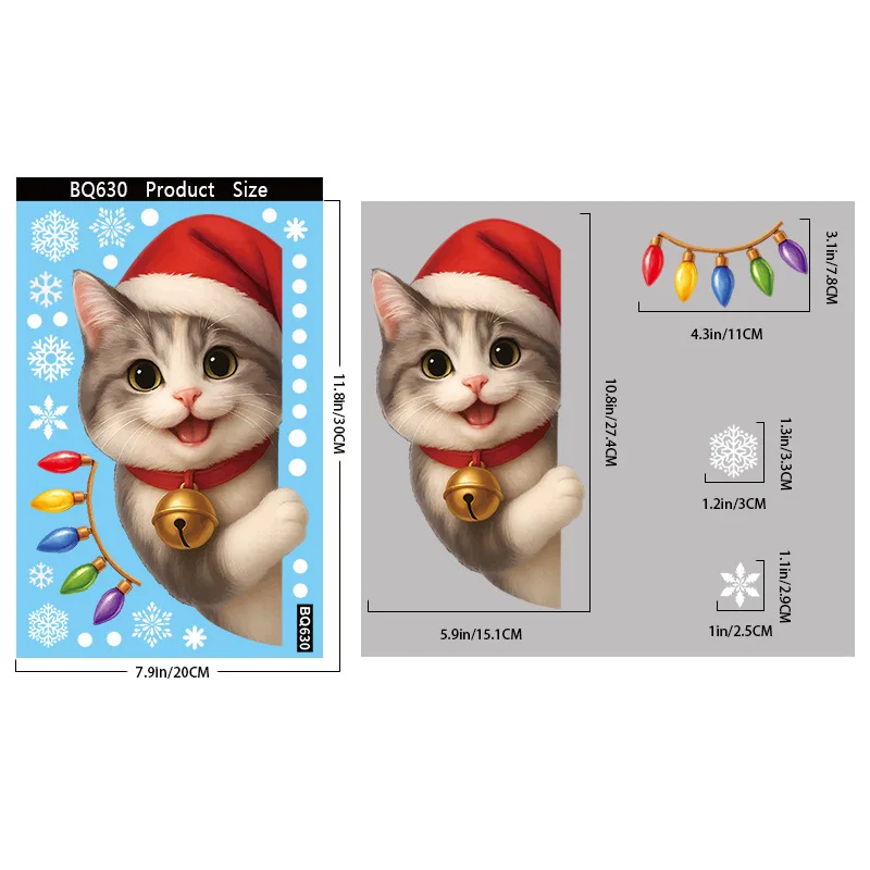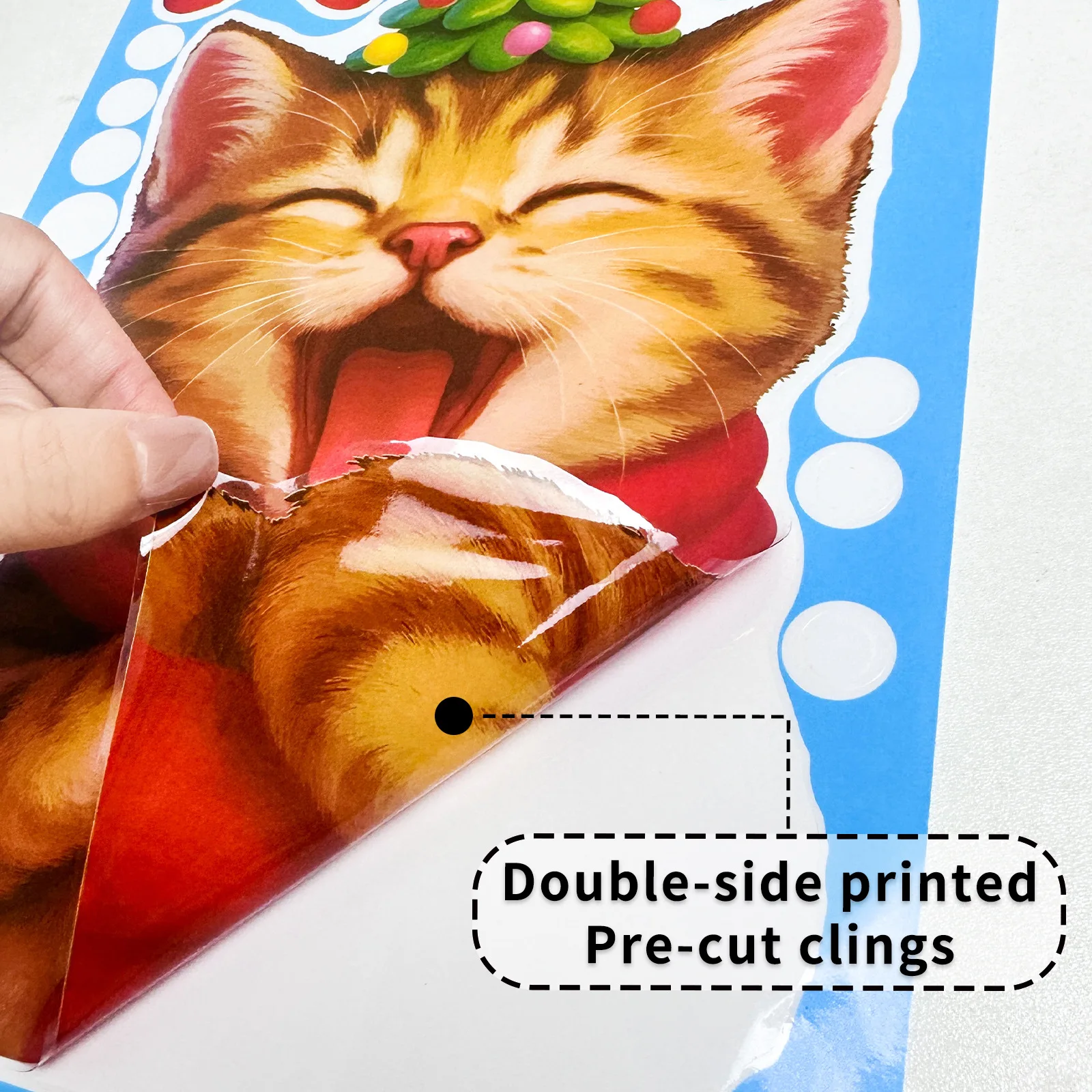 Comprar Pegatinas navideñas, pegatinas estáticas creativas de gato, suministros para fiesta de Navidad, pegatinas de cristal con campana de nieve