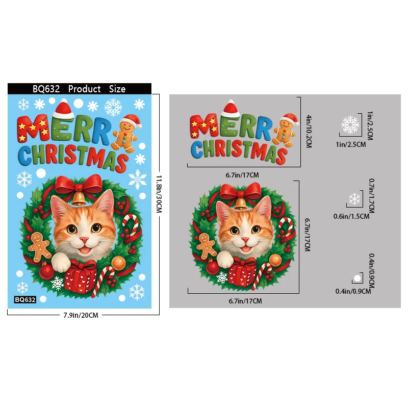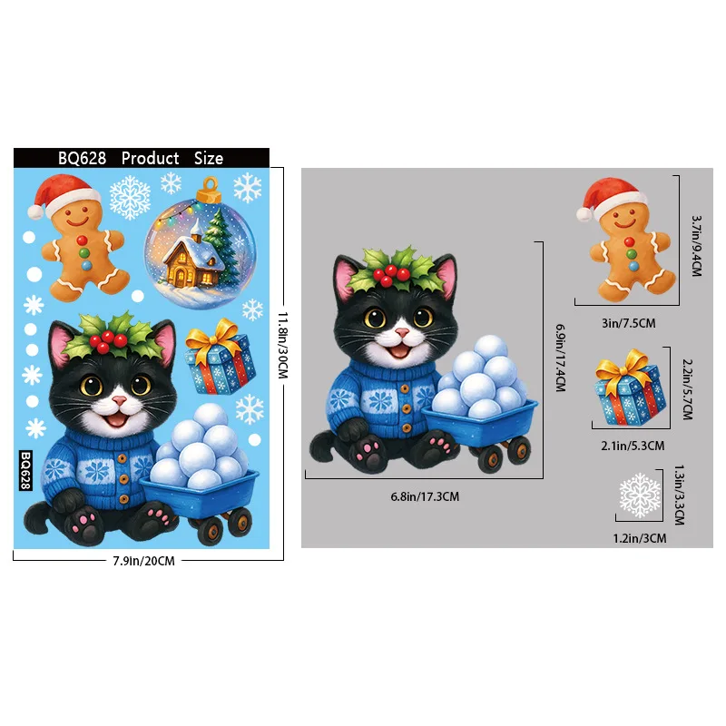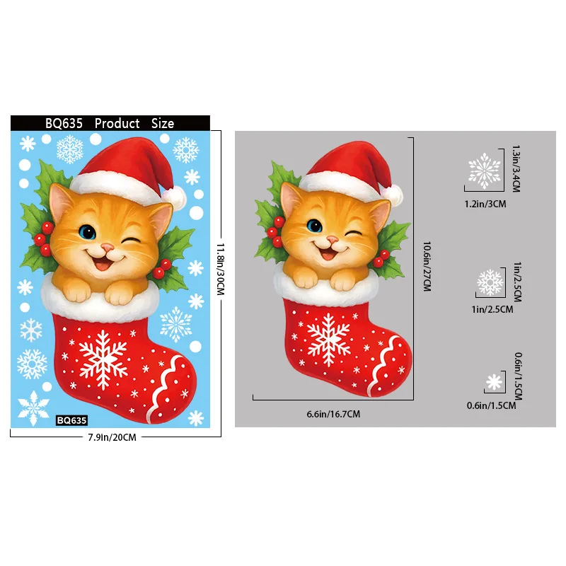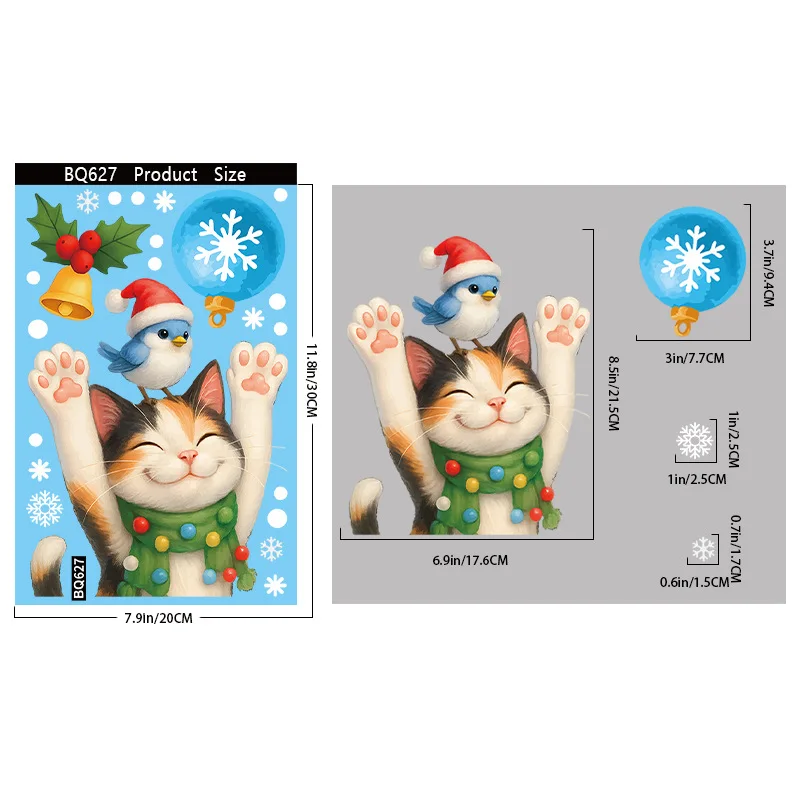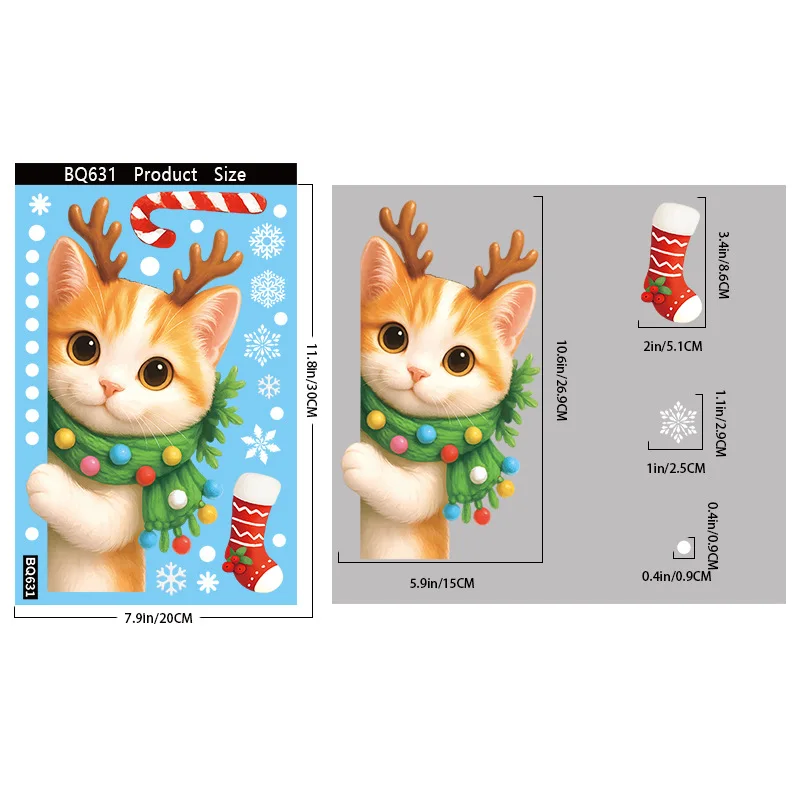 Comprar Pegatinas navideñas, pegatinas estáticas creativas de gato, suministros para fiesta de Navidad, pegatinas de cristal con campana de nieve