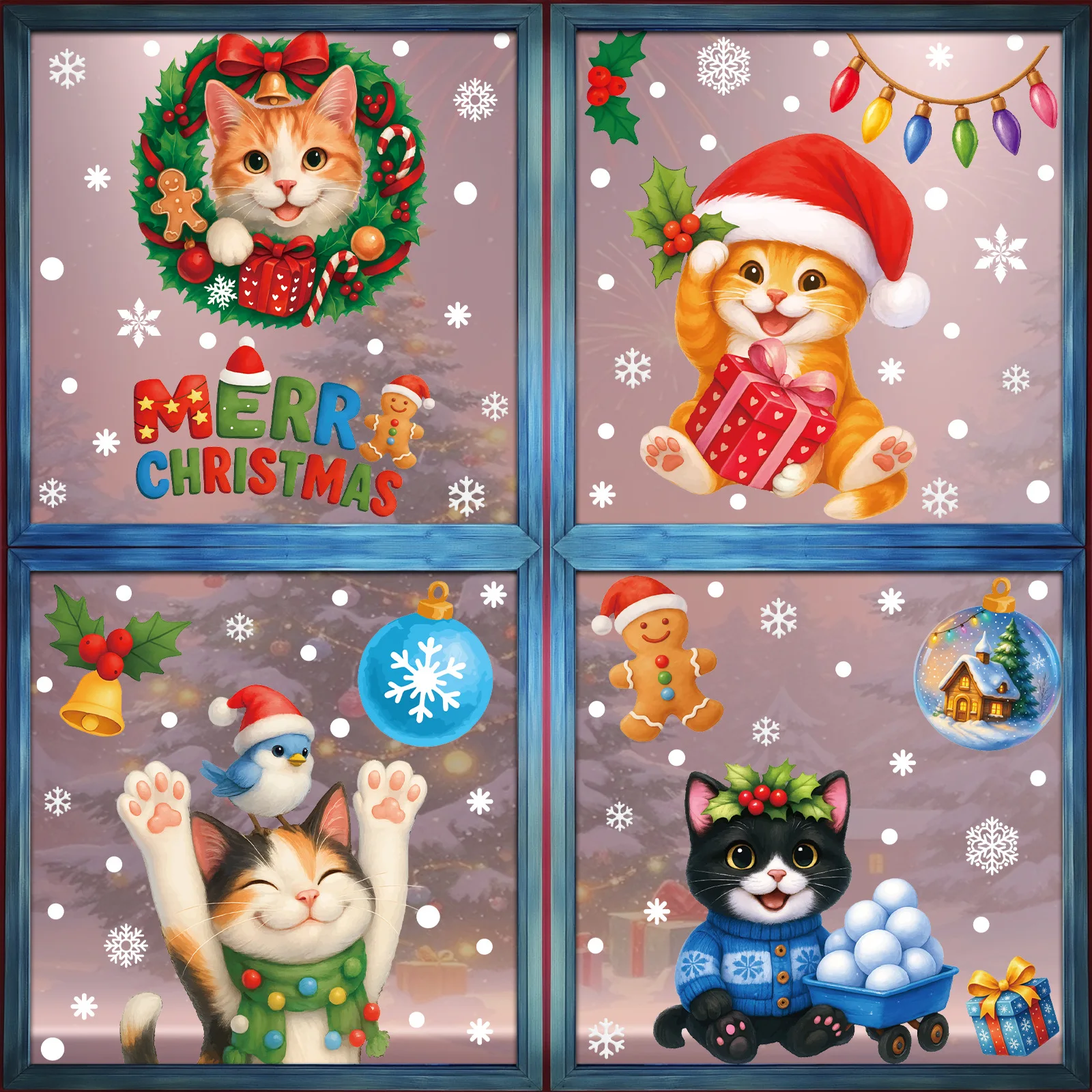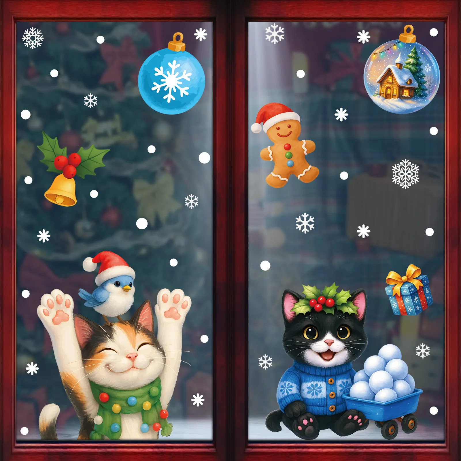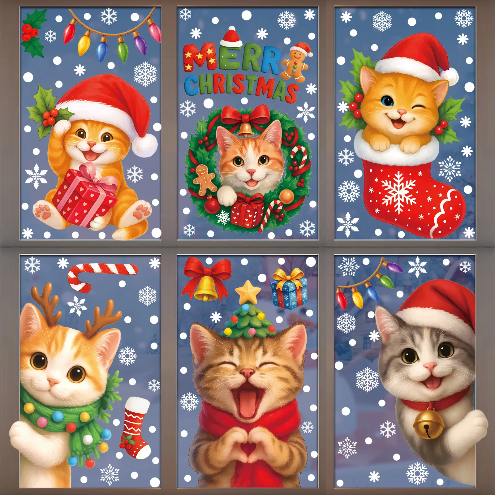 Comprar Pegatinas navideñas, pegatinas estáticas creativas de gato, suministros para fiesta de Navidad, pegatinas de cristal con campana de nieve