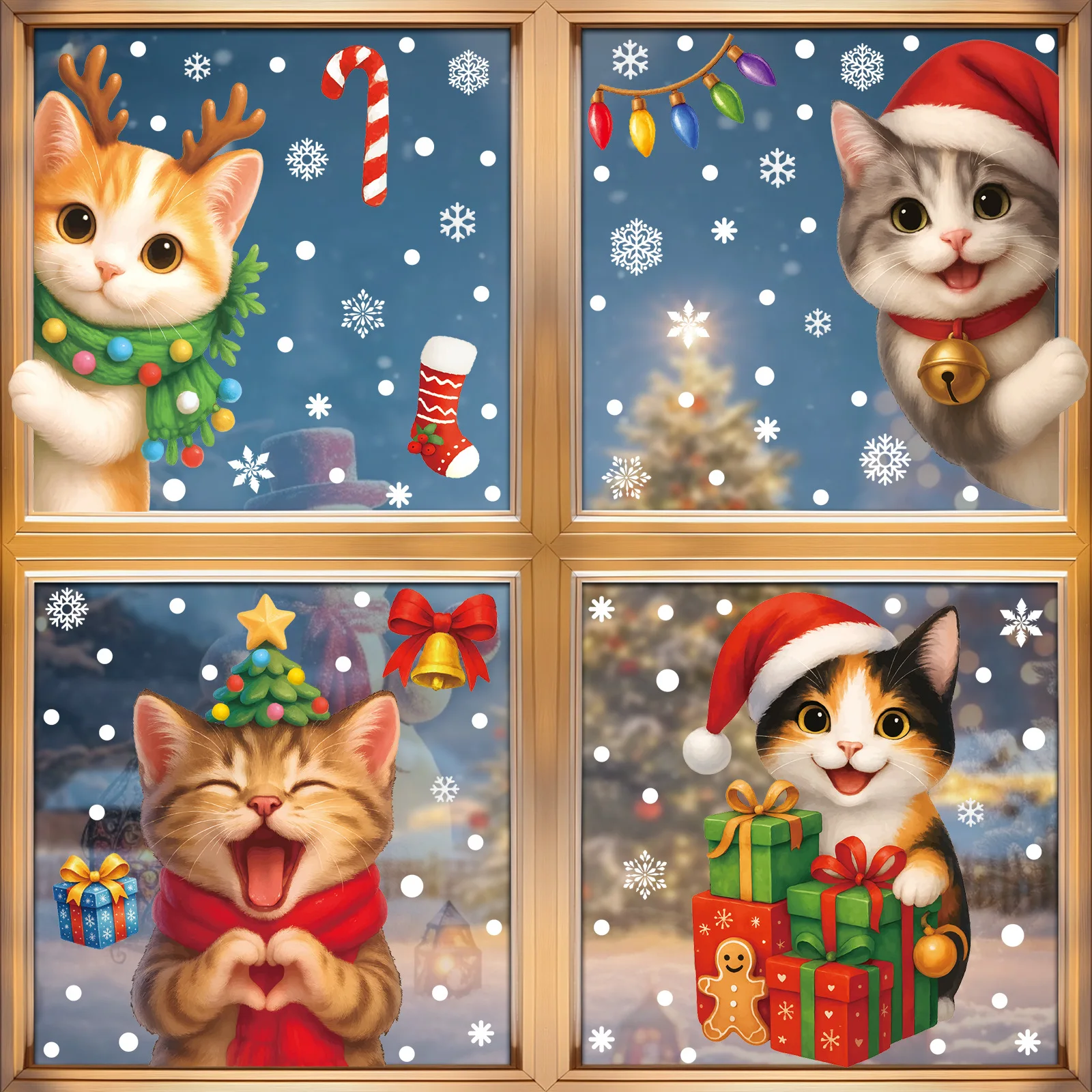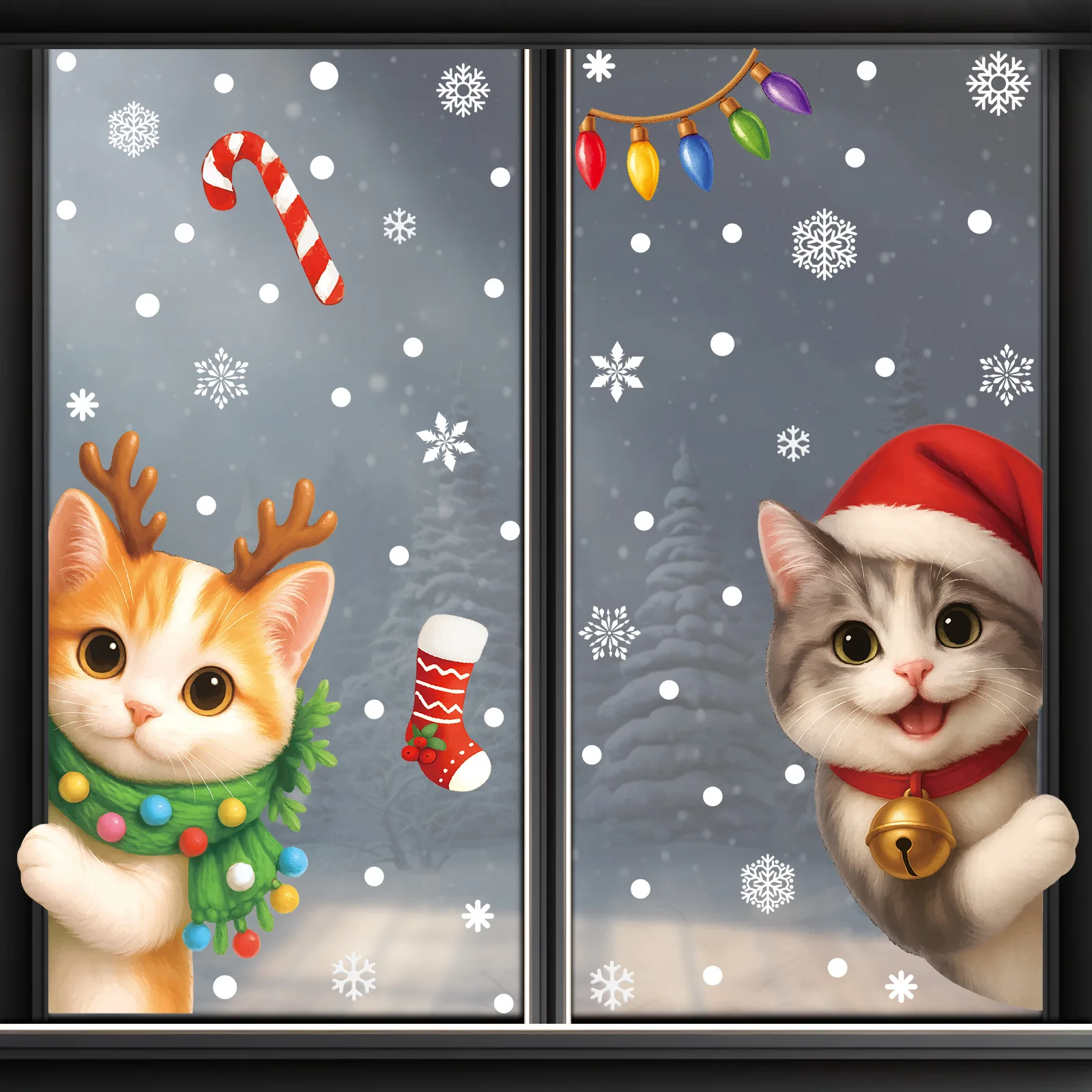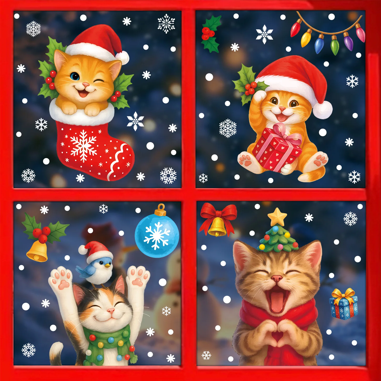 Comprar Pegatinas navideñas, pegatinas estáticas creativas de gato, suministros para fiesta de Navidad, pegatinas de cristal con campana de nieve