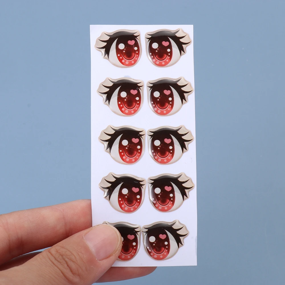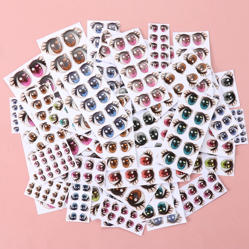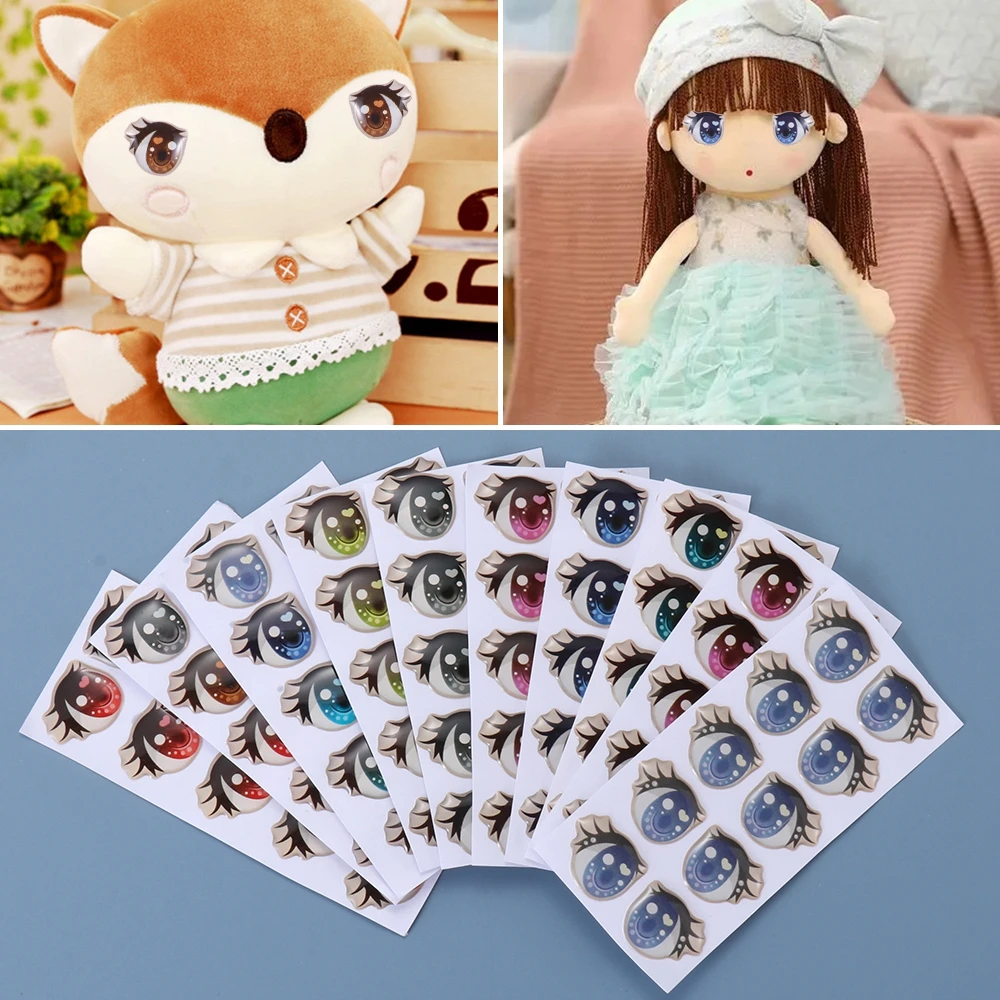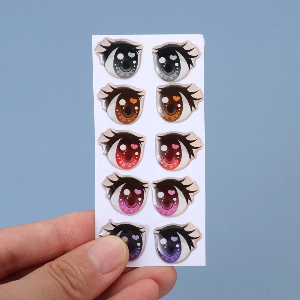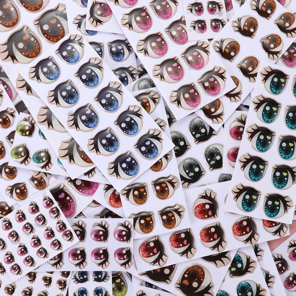 10Pairs Cute Cartoon Eyes Stickers Toys Anime Figurine Doll Eyes Eyelashes Face Organ Paster For DIY Plush Blythe Doll Accessory