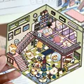 Comprar Pegatinas de paisaje de dibujos animados, lindo mundo en miniatura, descompresión estereoscópica 3D, escena DIY, pegatinas para bolso