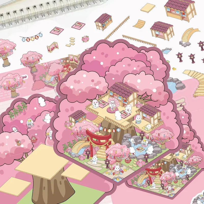 Comprar Pegatinas de paisaje de dibujos animados, mundos en miniatura, pequeñas cabinas 3D creativas, escenas de descompresión DIY, pegatina de PET