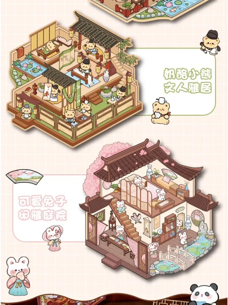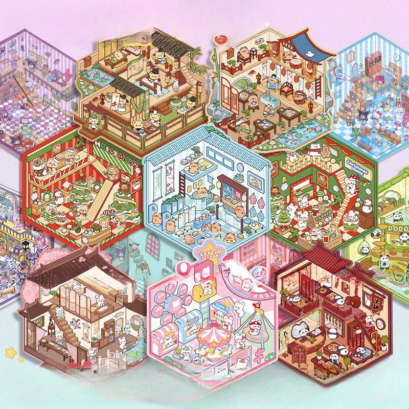 Comprar Pegatinas de paisajismo 3D Kawaii, escena en miniatura de dibujos animados, pegatinas tridimensionales apilables visuales, regalo de Navidad para niños