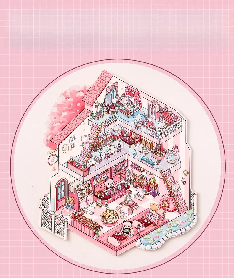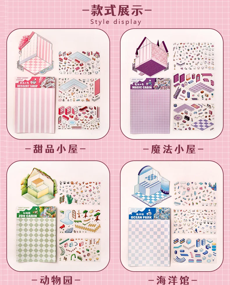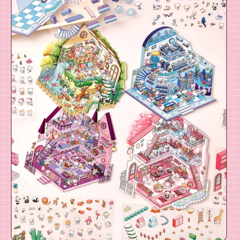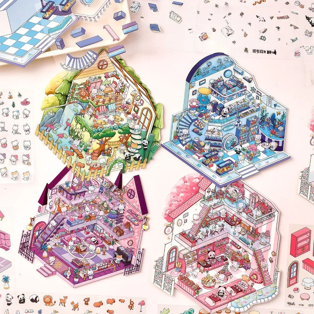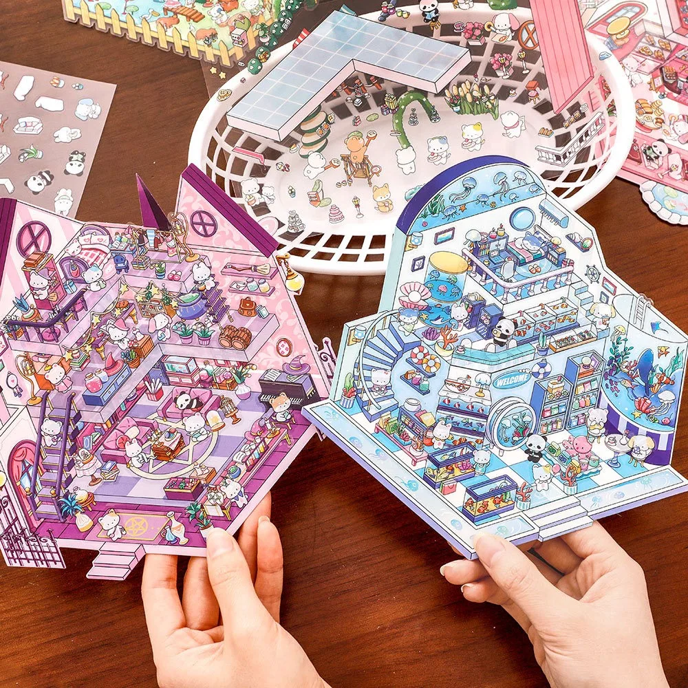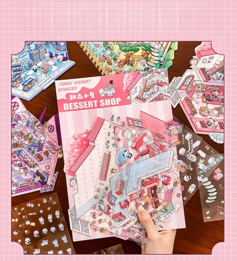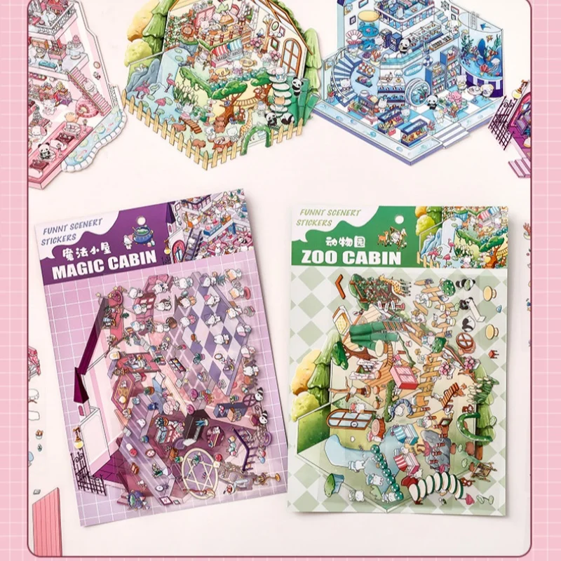 tamaño 19,6*27,8 cm;4 colores;Pegatinas de paisaje de dibujos animados, escenas en miniatura estereoscópicas 3D de gran tamaño, Collage, pegatina hecha a mano para estudiantes DIY
